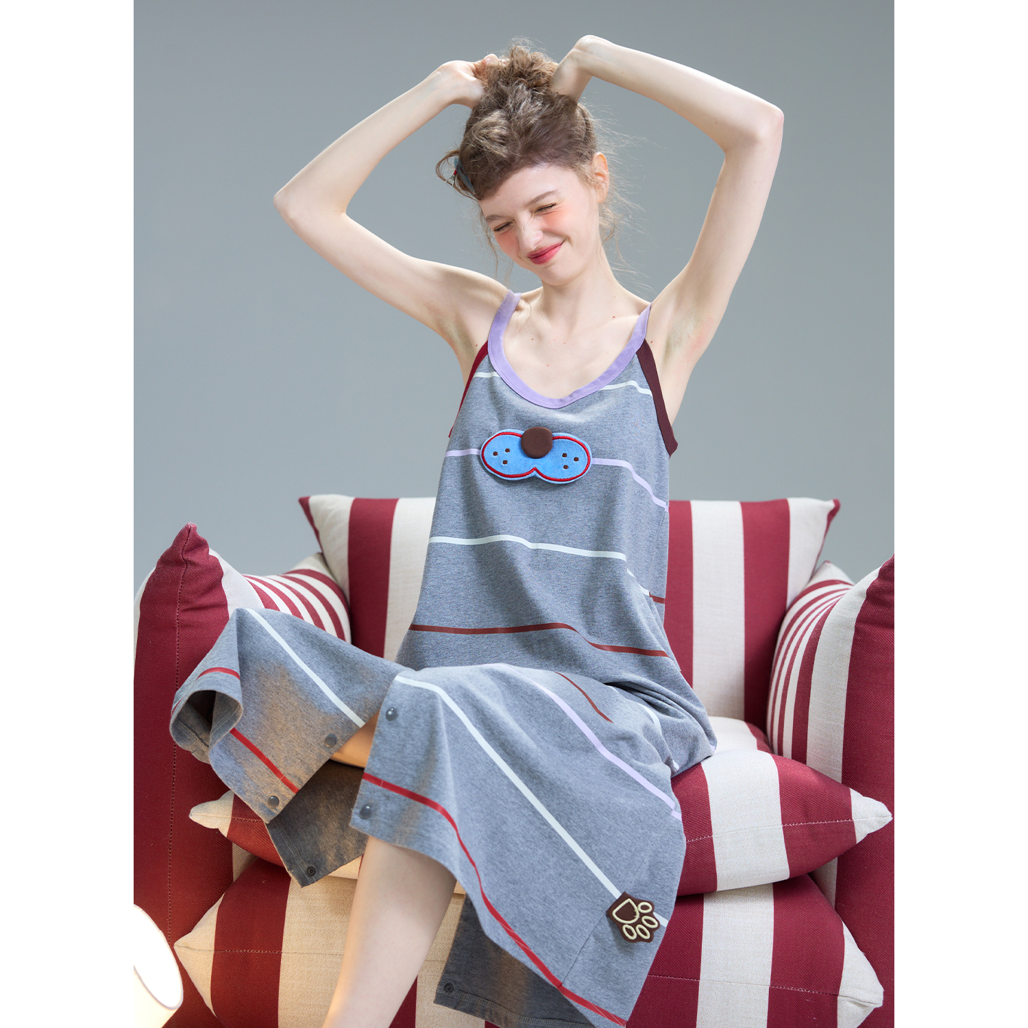yso【酷猫系列】睡衣女连体短袖夏季条纹休闲睡裙可外穿家居服B