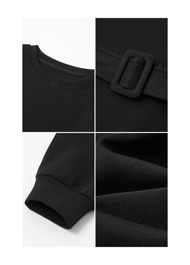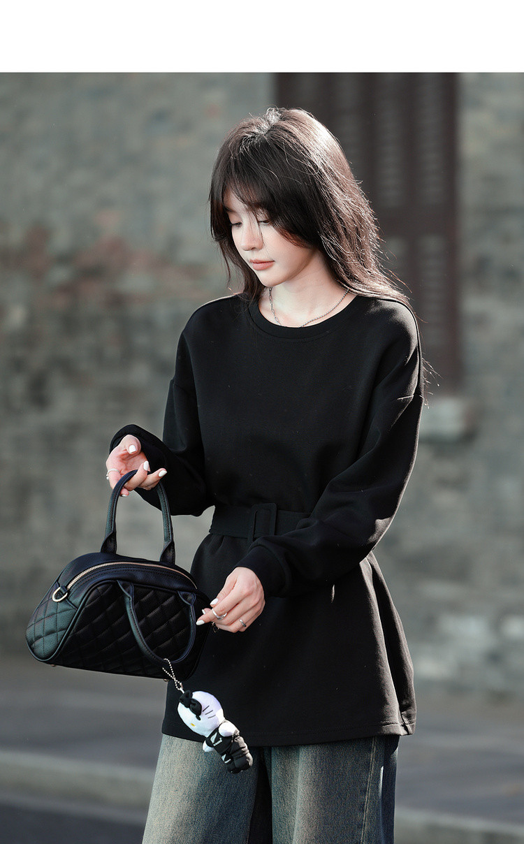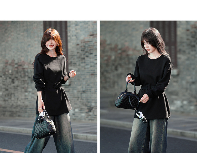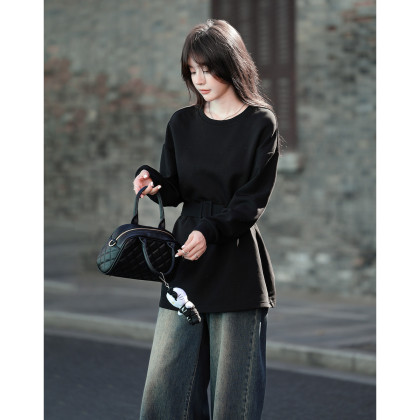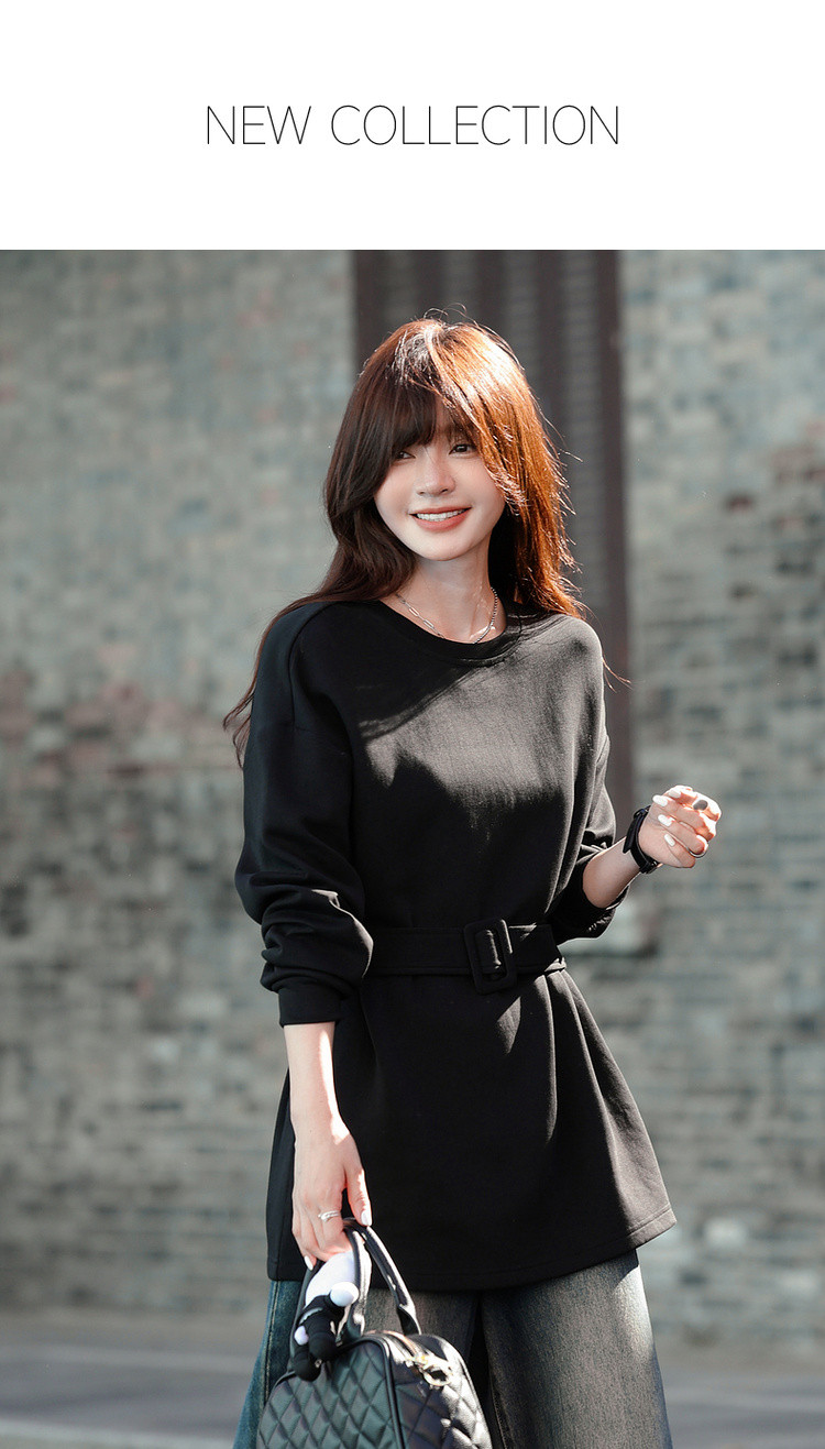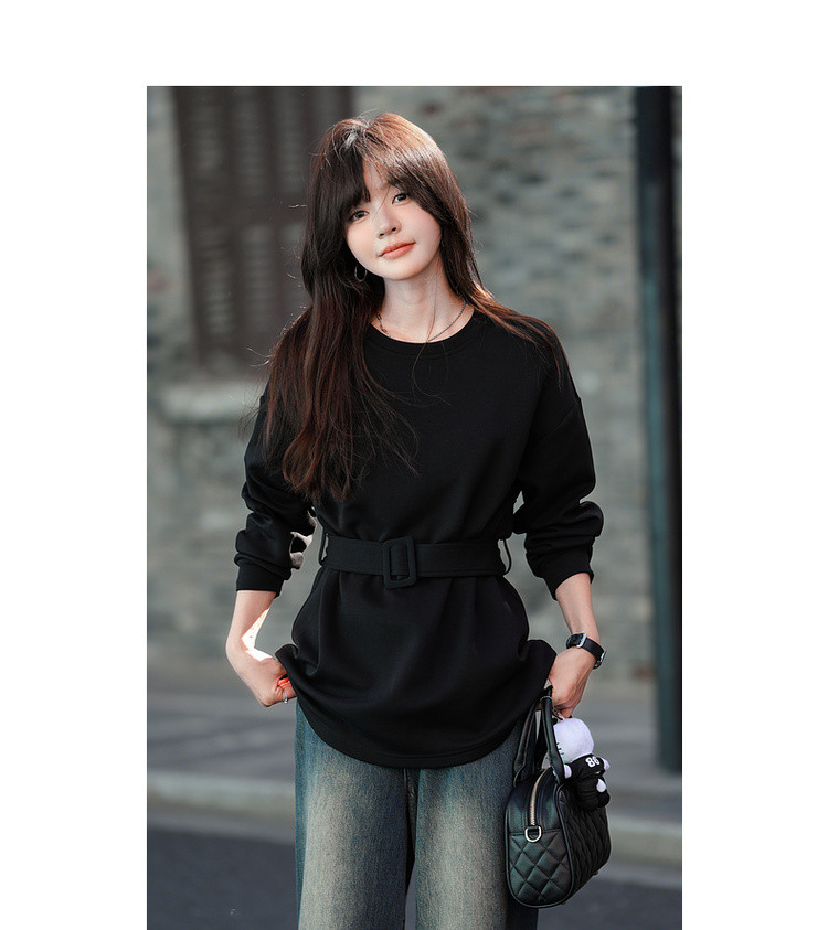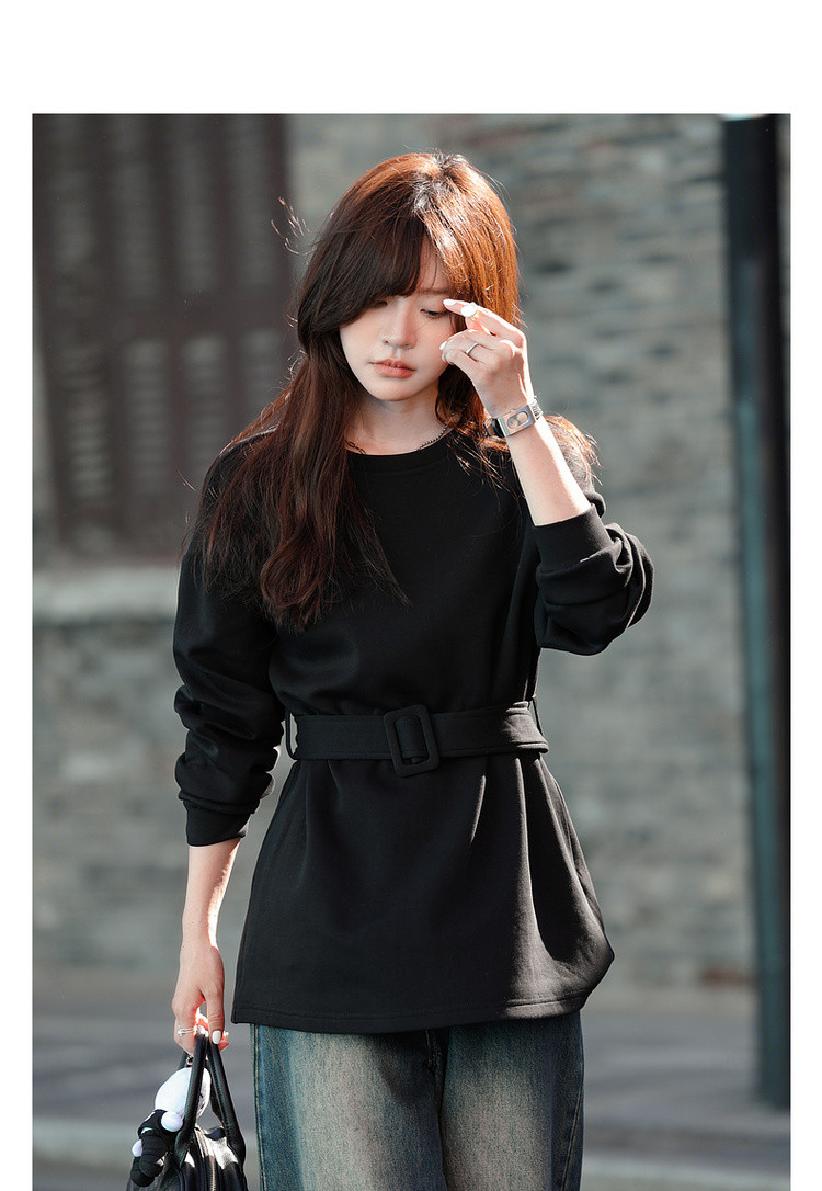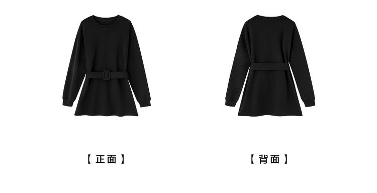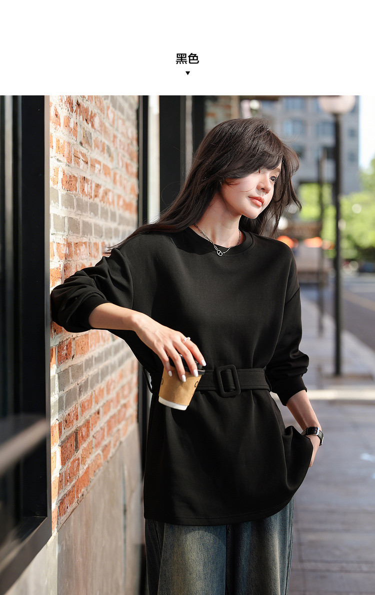 【柔触云朵棉】秋季气质设计感腰带圆领宽松舒适中长款卫衣女上衣