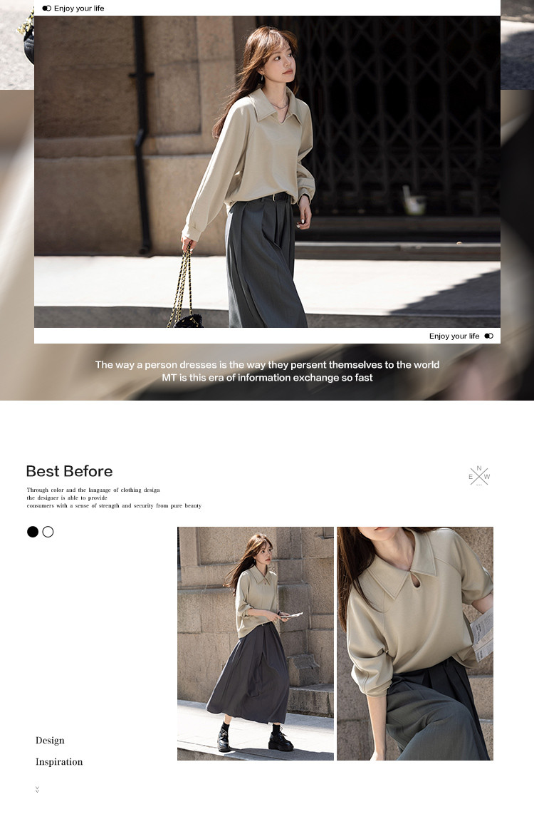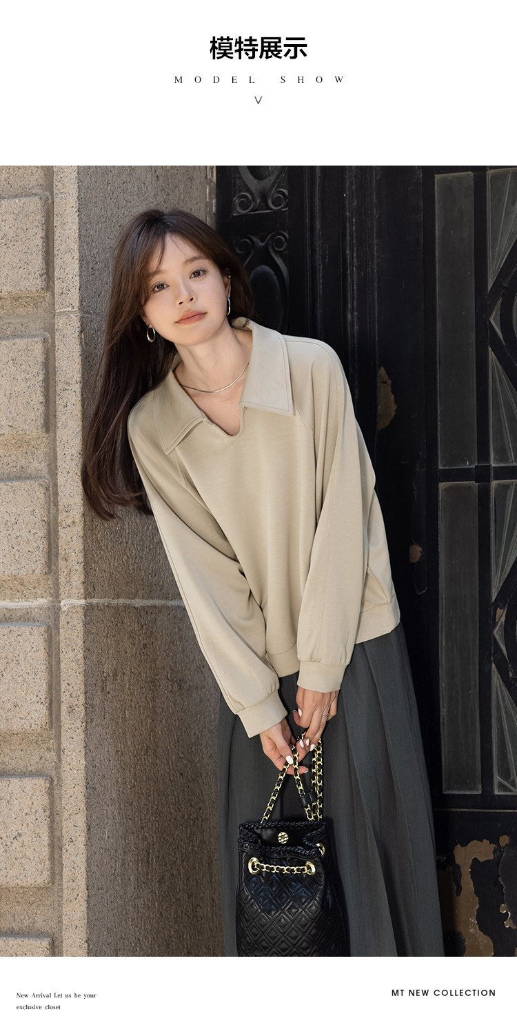 【日系学院风】秋季款空气层水滴扣翻领设计气质长袖卫衣