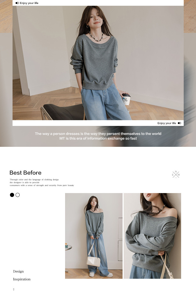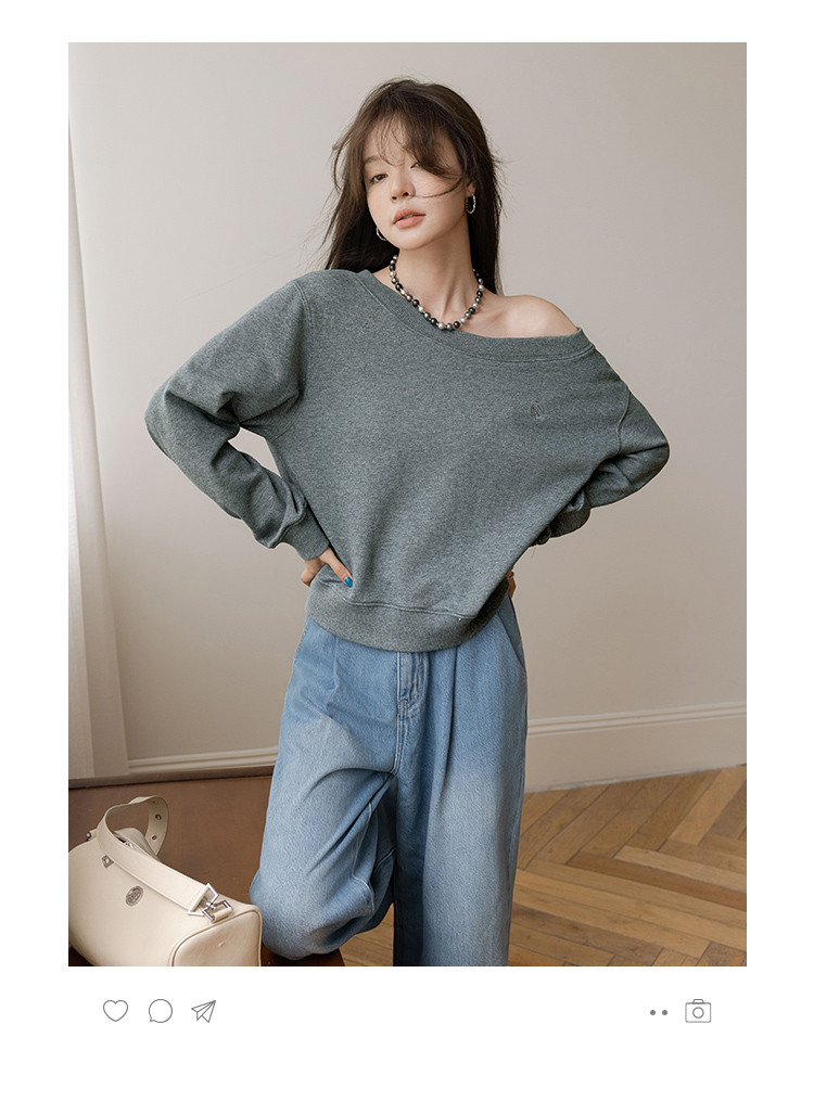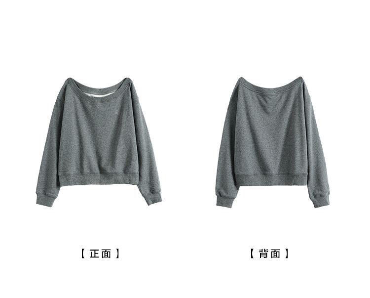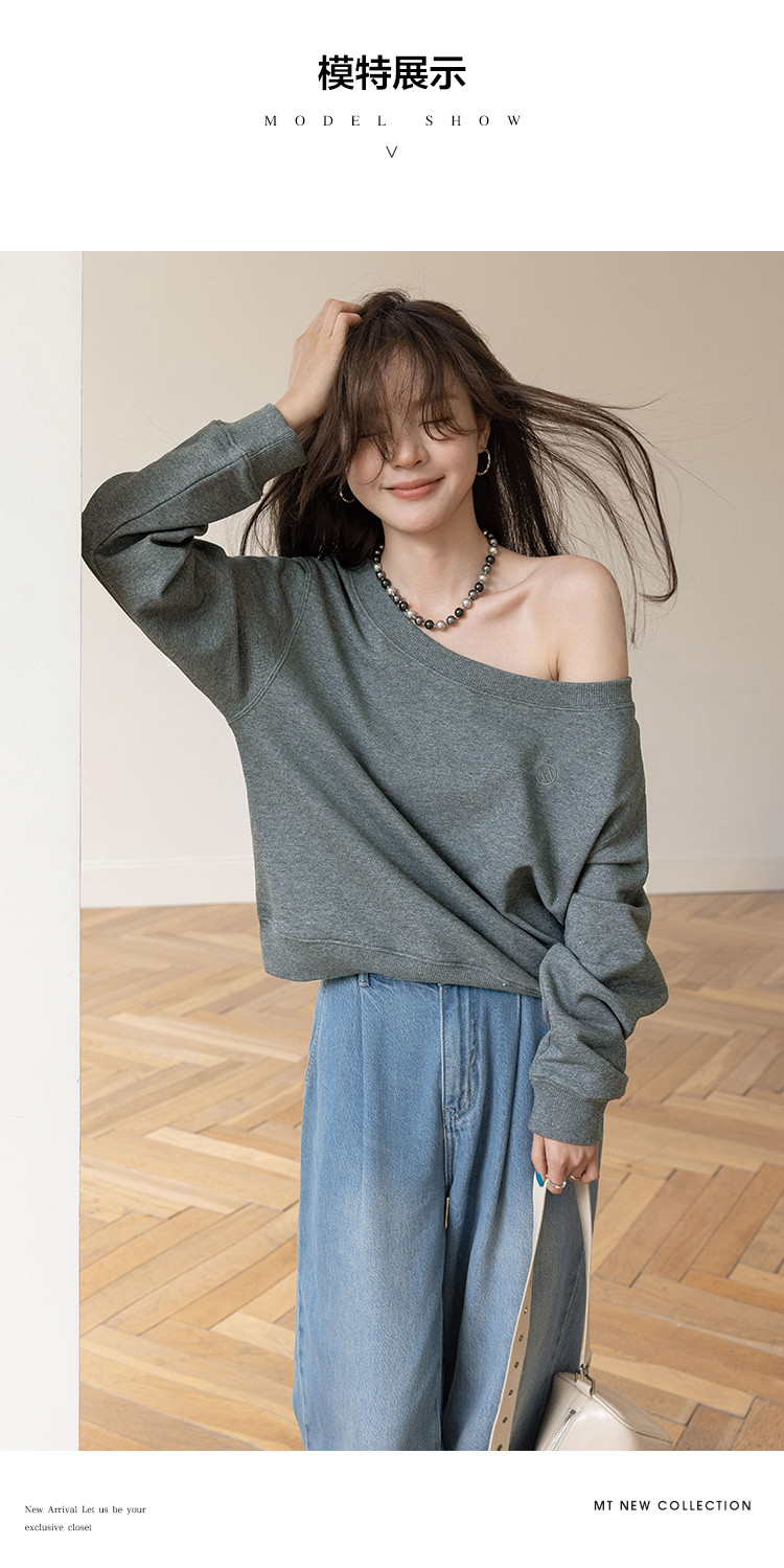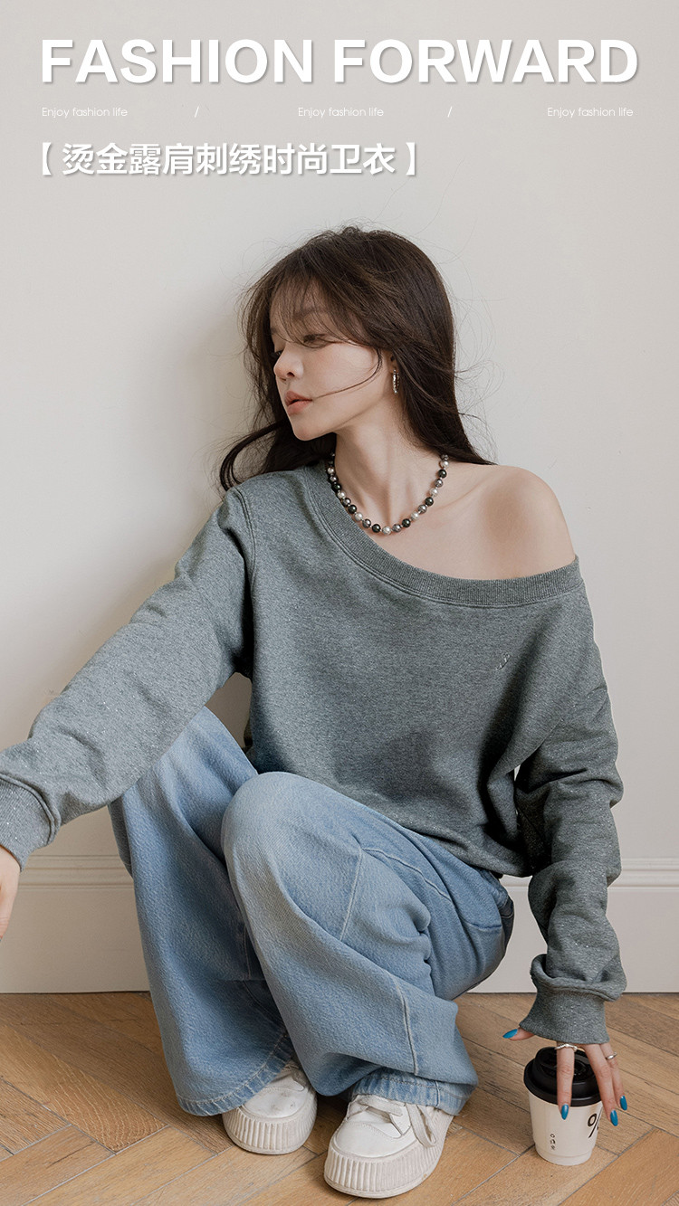 【甜酷慵懒感】秋季款休闲烫金毛圈布露肩小刺绣设计时尚长袖卫衣