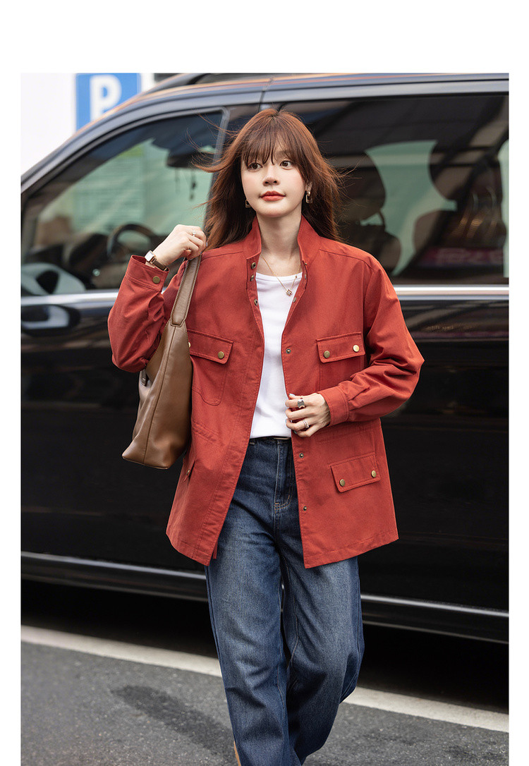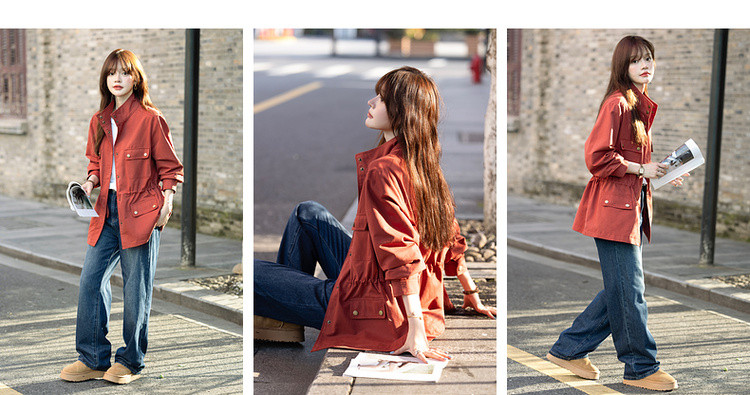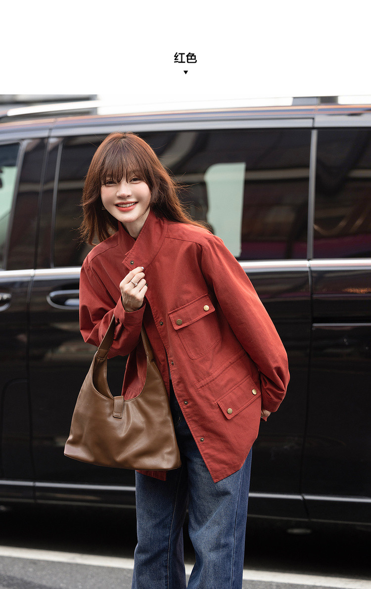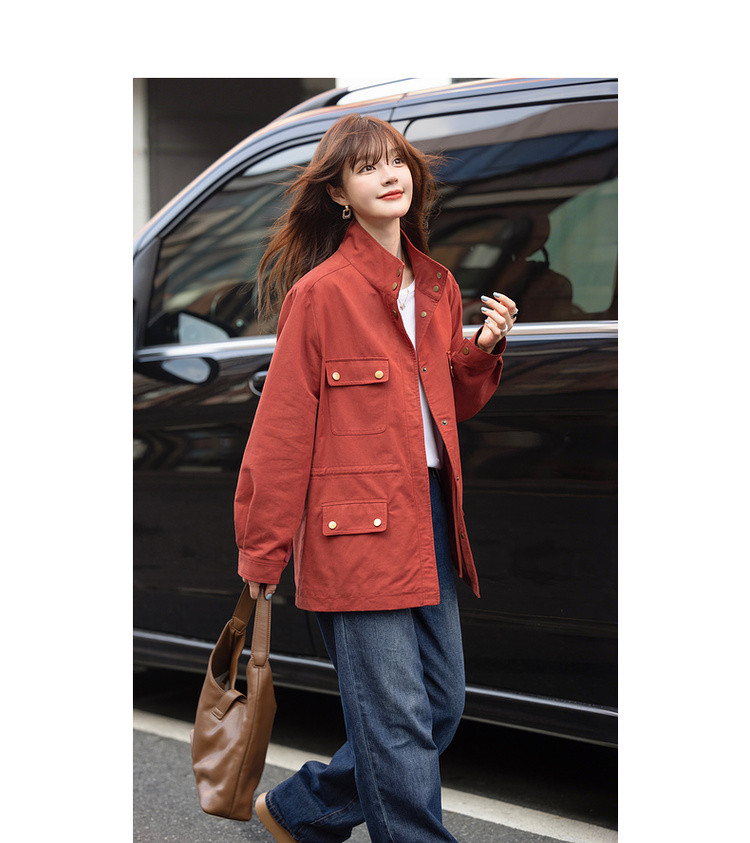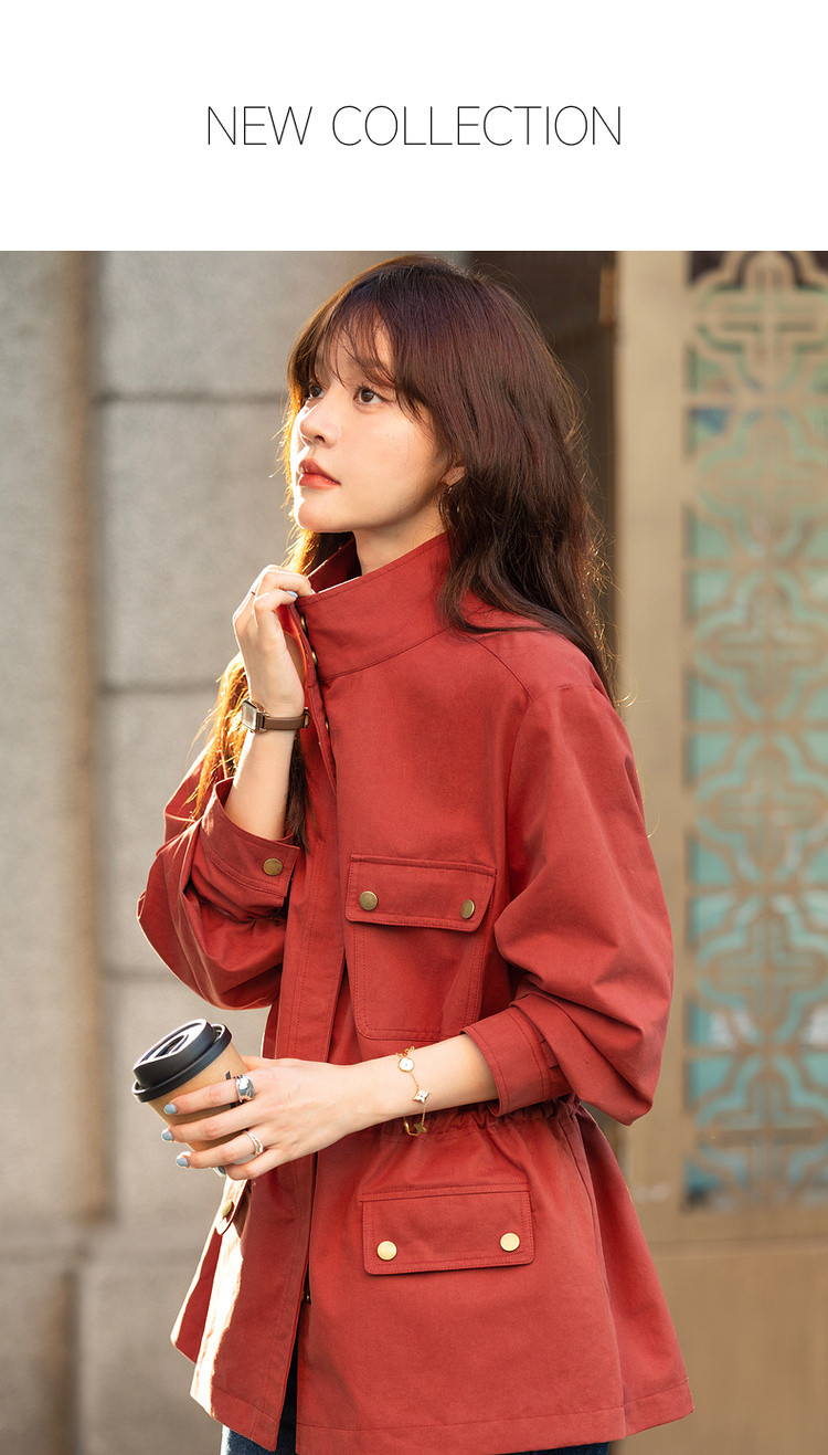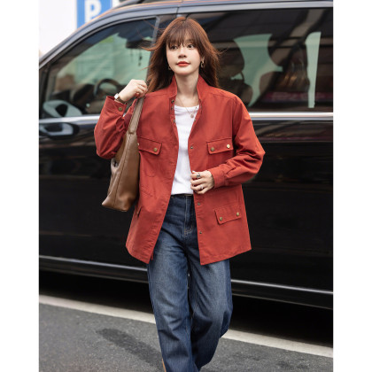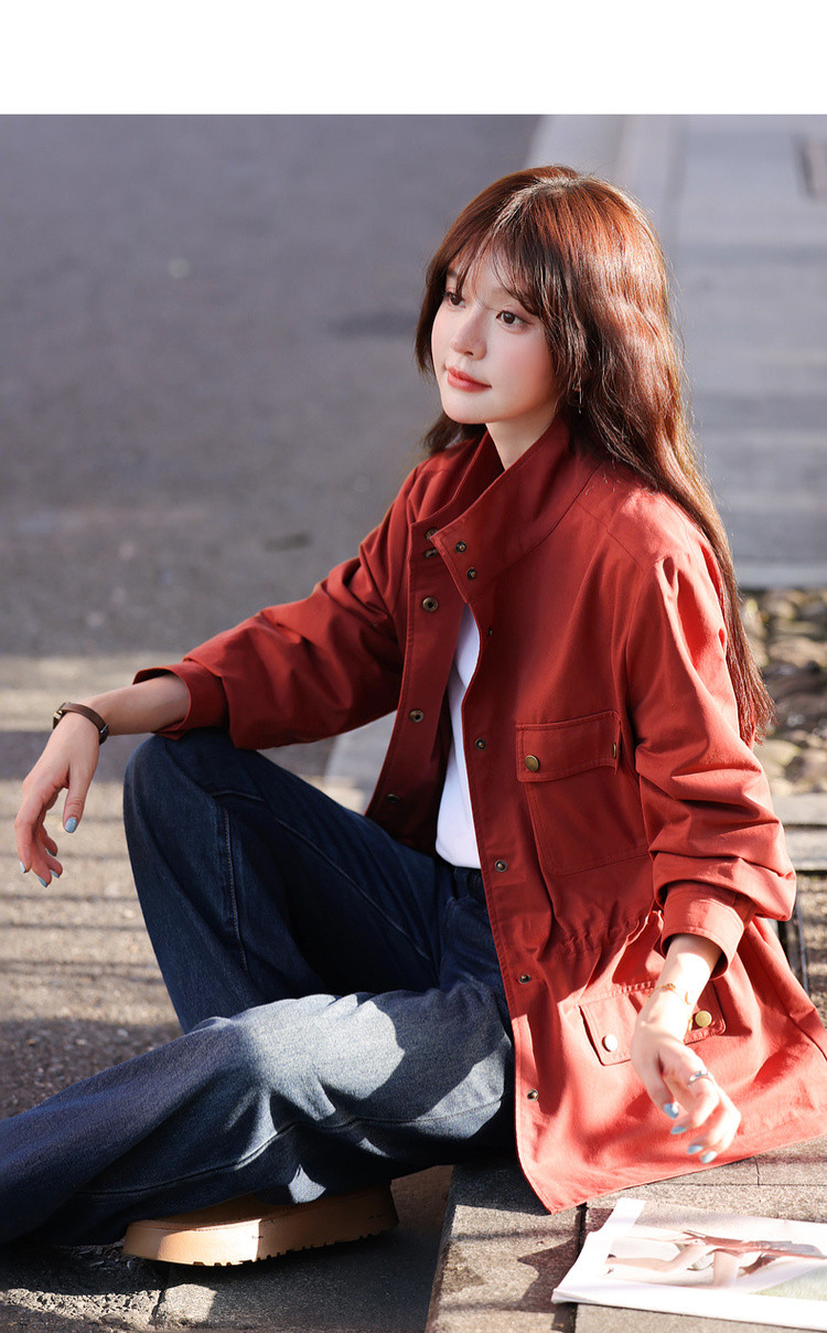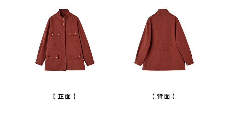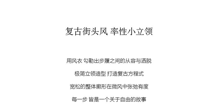 【自由新风】秋季复古风纯棉立领口袋舒适宽松中长款女式风衣外套