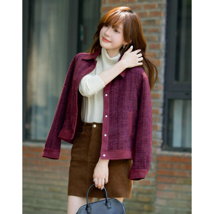 【无界优雅】2025冬小香风肌理感拼接翻领气质正肩单排扣女式外套