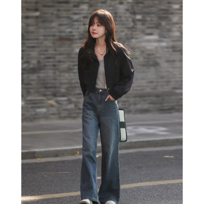 【穿型都市】秋季街头风立领休闲轻薄拉链宽松短款小个子女式外套