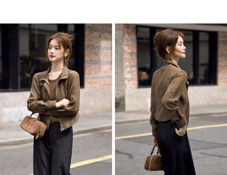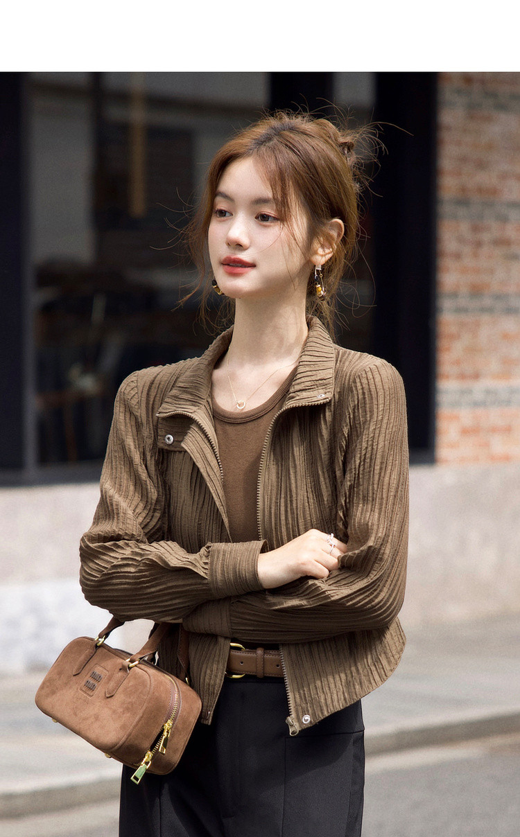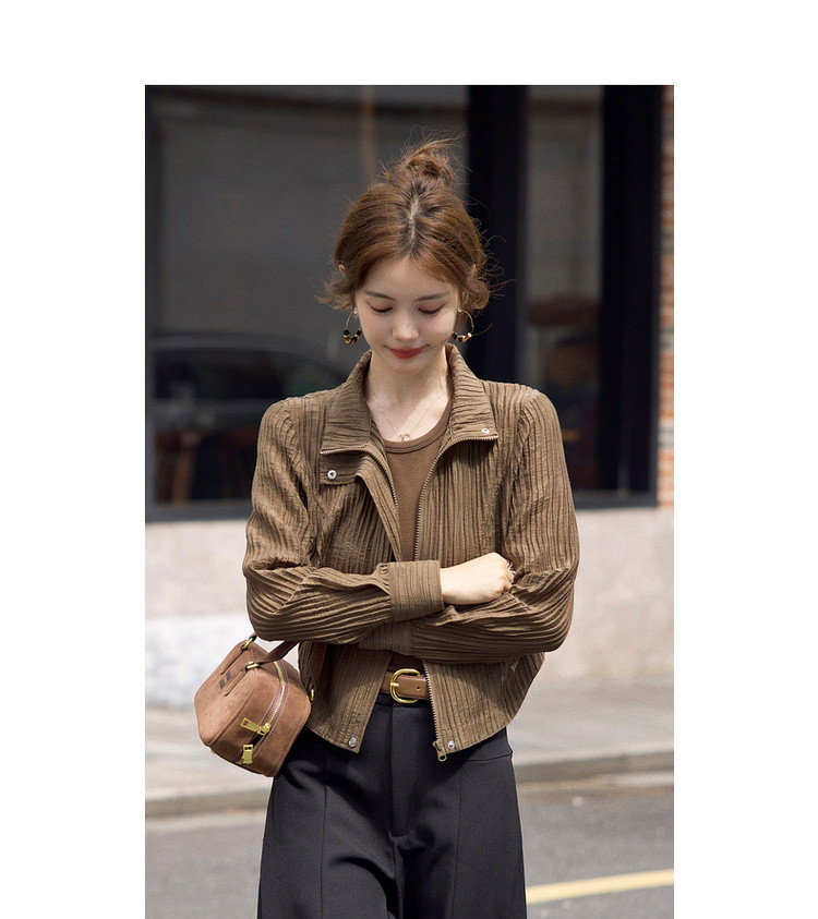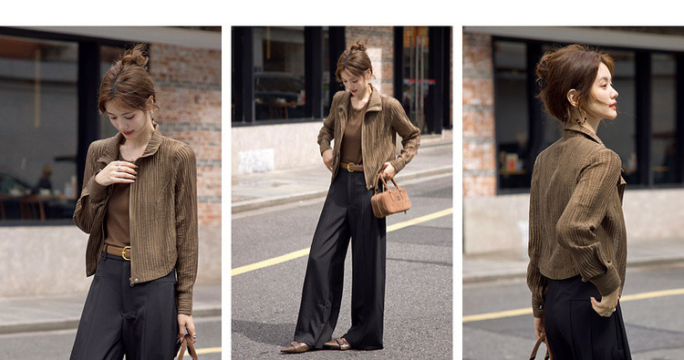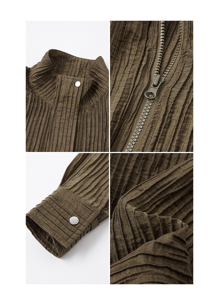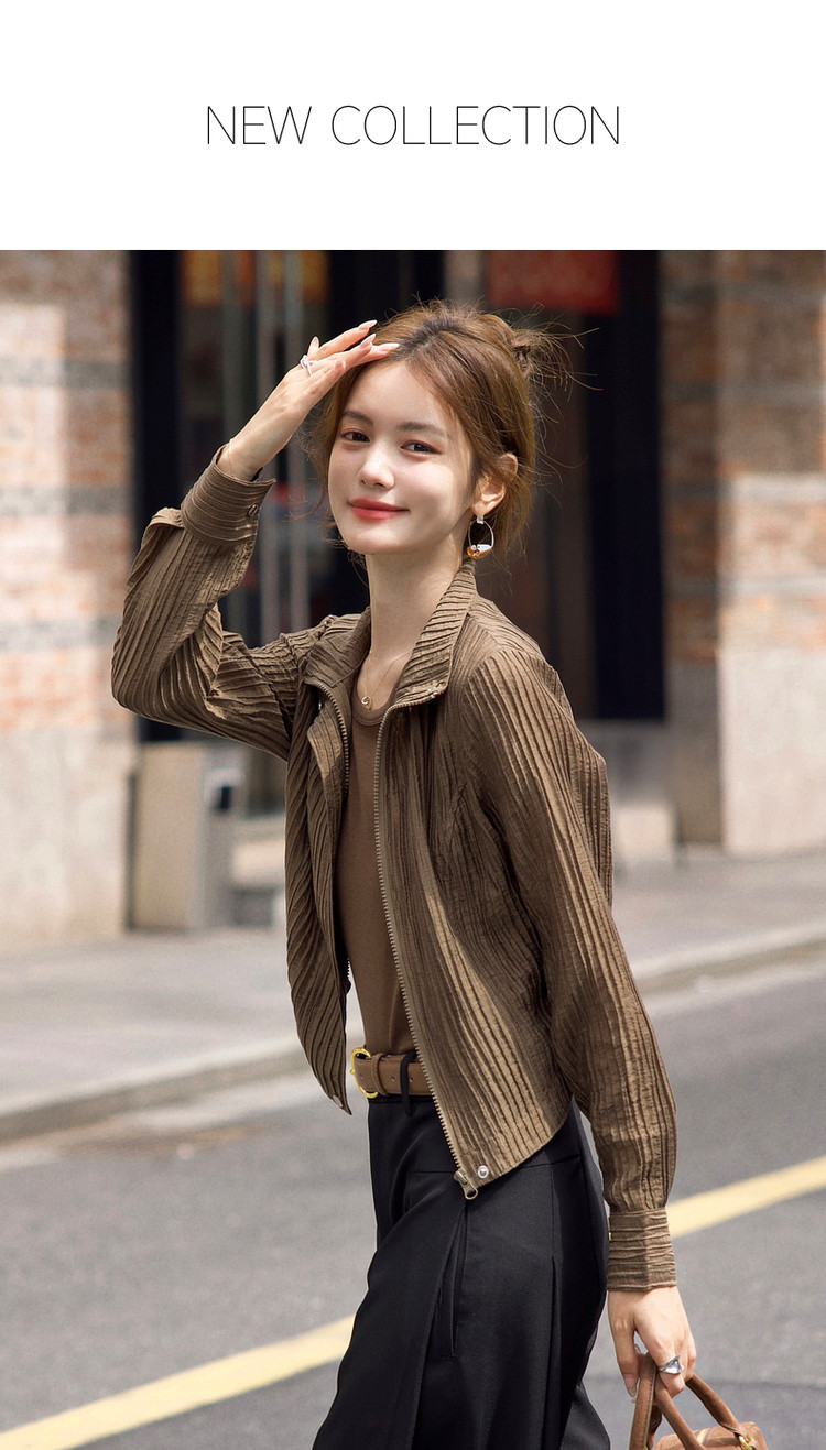【轻量出行日】秋季条纹肌理立领开衫轻薄莱赛尔短款休闲女式外套