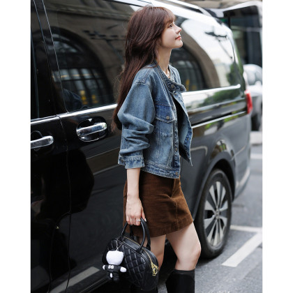 【丹宁时髦客】秋季复古风水洗云朵棉立领松弛感短款女式牛仔外套
