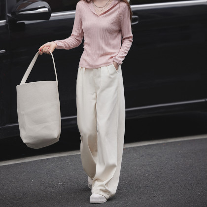【纯色简搭】秋季极简风高腰百搭阔直筒牛仔裤长裤