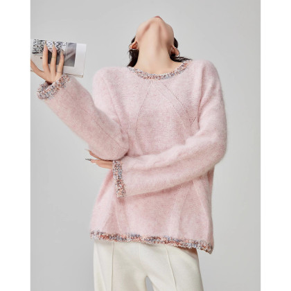 【香风针织】2025冬轻奢圆领撞色边线衫气质舒适含羊毛针织衫女上衣