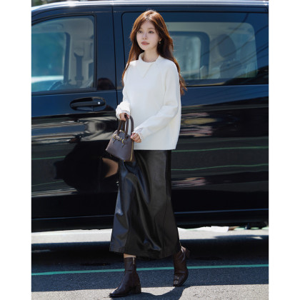 【淡人职场】2025冬设计感不规则领拼接线衫慵懒风舒适针织衫女上衣