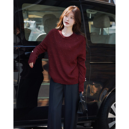 【雅奢日常化】2025冬浪漫亮片圆领线衫慵懒风柔软舒适针织衫女上衣