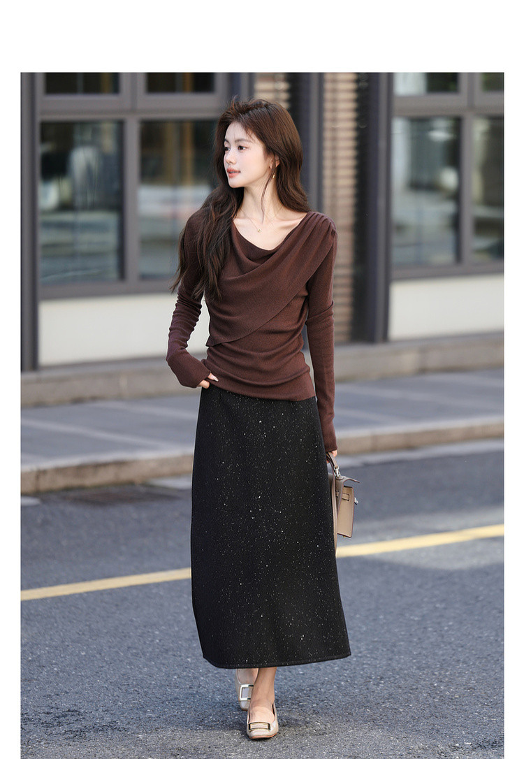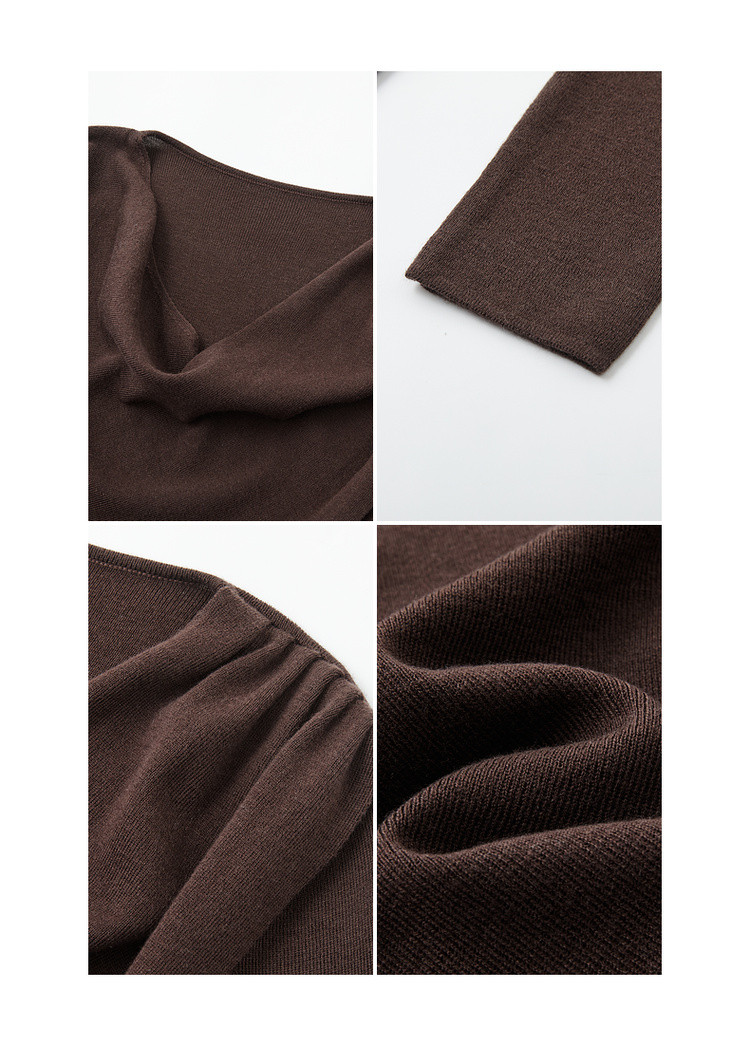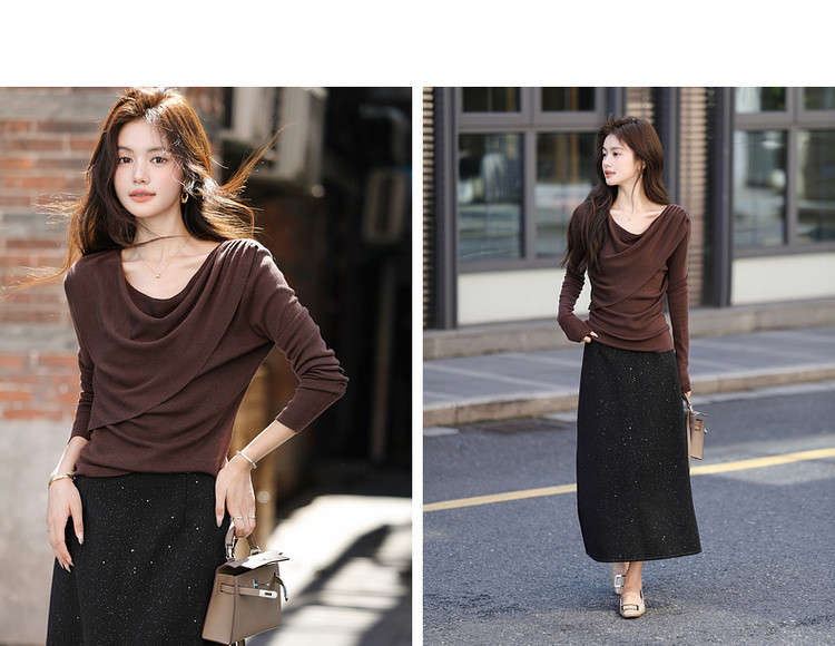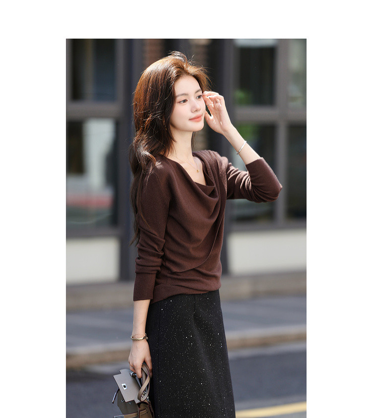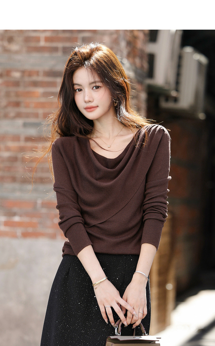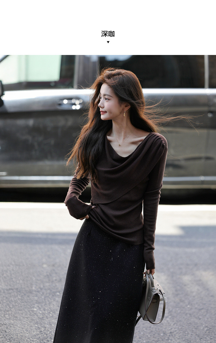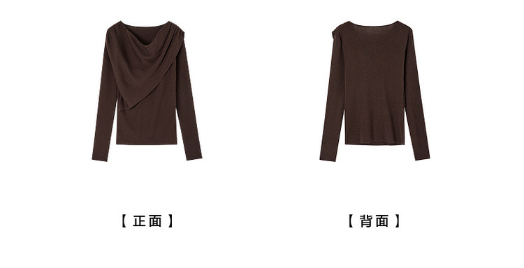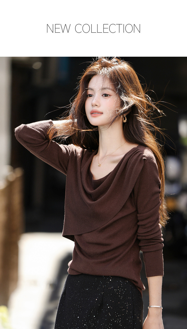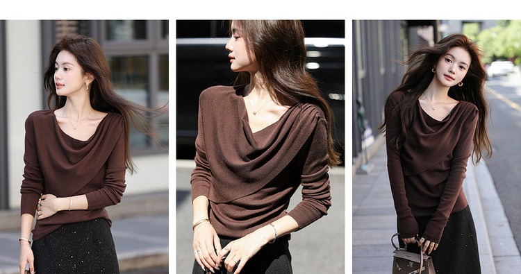 【慵懒序章】秋季法式复古褶皱荡领线衫修身含绵羊毛针织衫女上衣