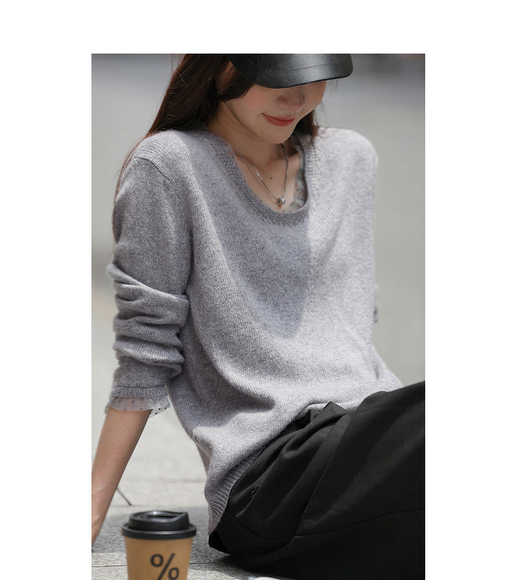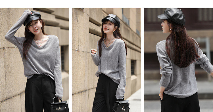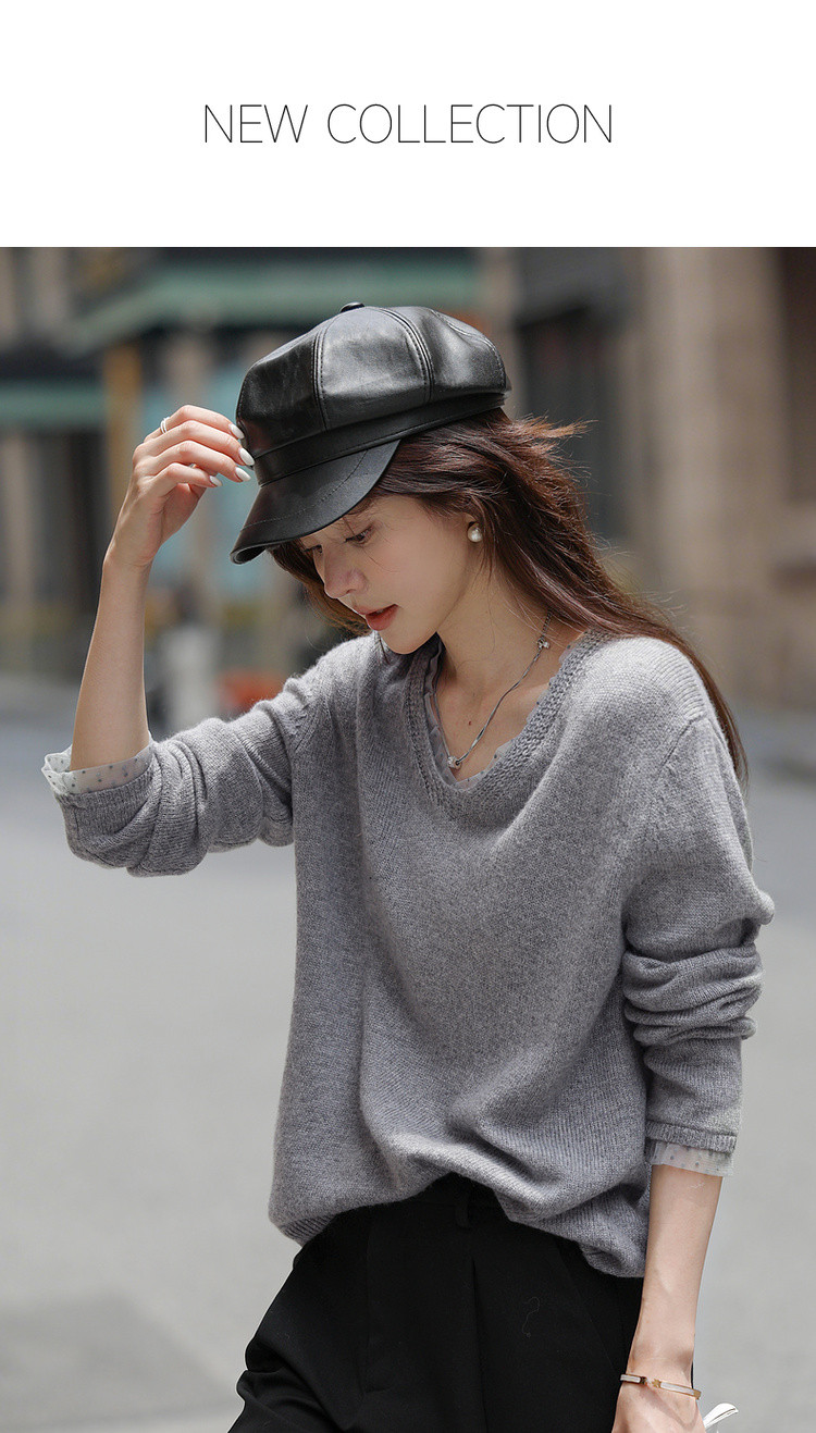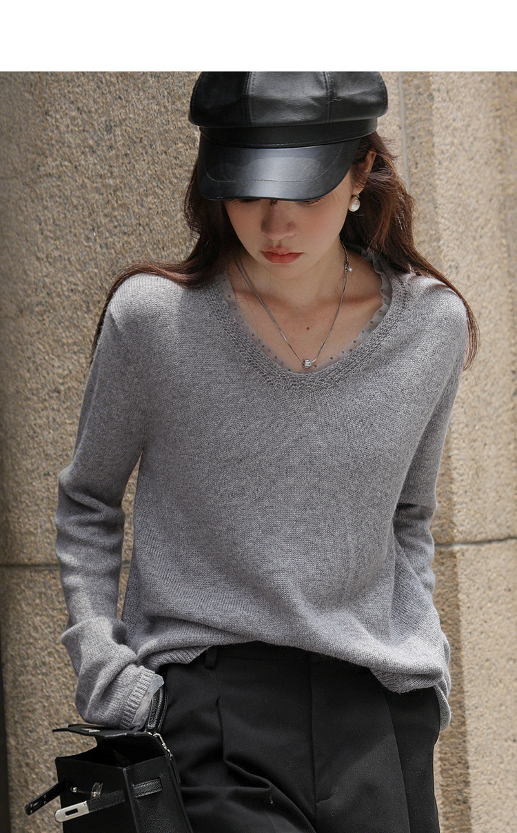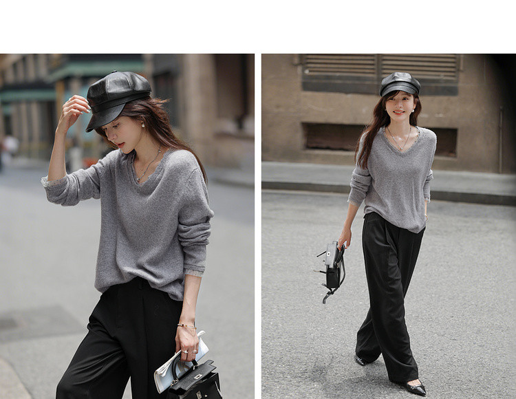 【舒暖绵羊毛】秋季静奢风拼接V领线衫温柔慵懒宽松针织衫女上衣