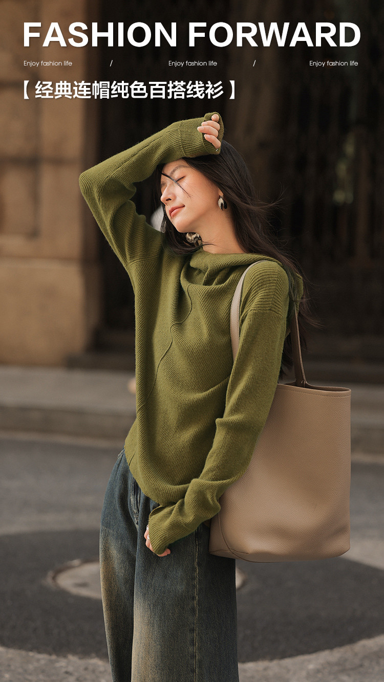 【温柔月光】秋款经典连帽纯色百搭长袖线衫