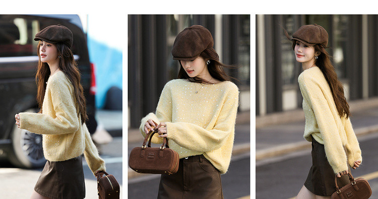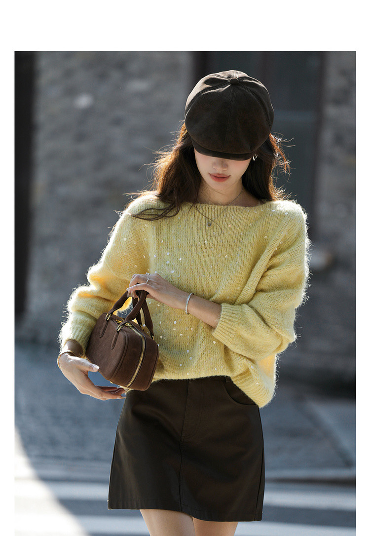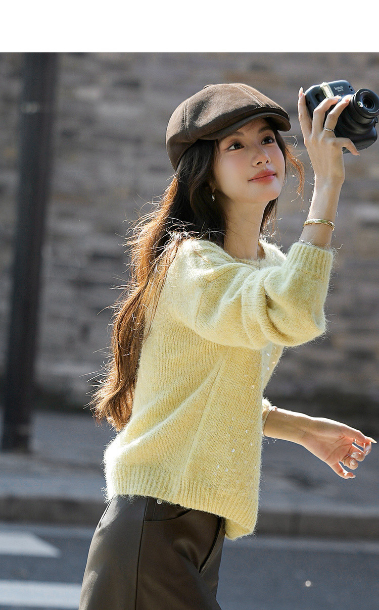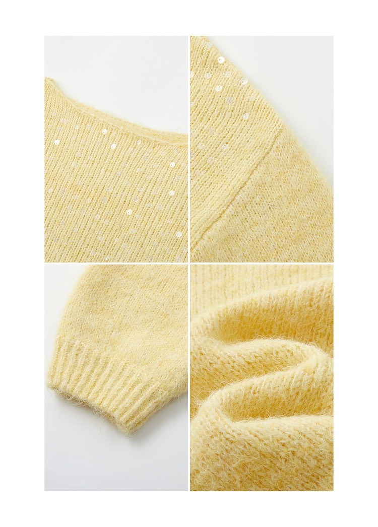 【含蓬松绵羊毛】秋季气质亮片圆领线衫慵懒软糯遮肉针织衫女上衣