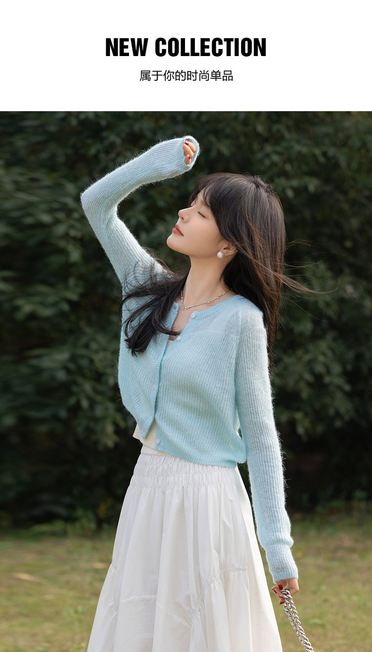 【半透视造型】秋季温柔多巴胺名媛线衫舒适高弹遮肉针织衫女上衣