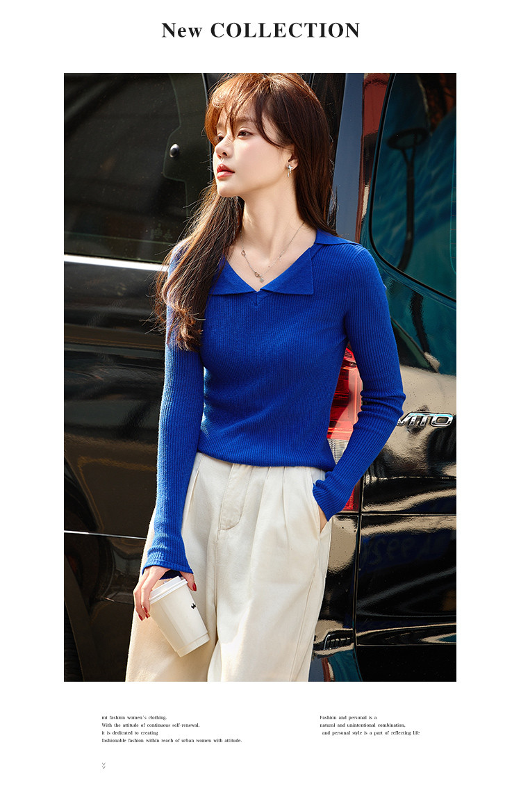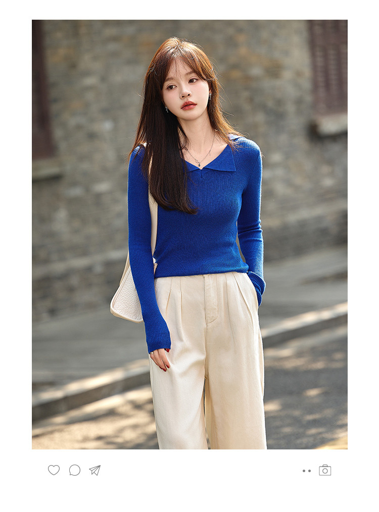 【腔调范儿骨感十足】秋季v领修身显白长袖针织衫