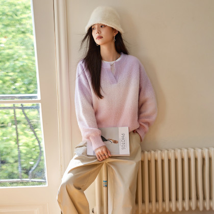 【时尚复古】秋季时尚复古小V领梦幻渐变套头针织衫