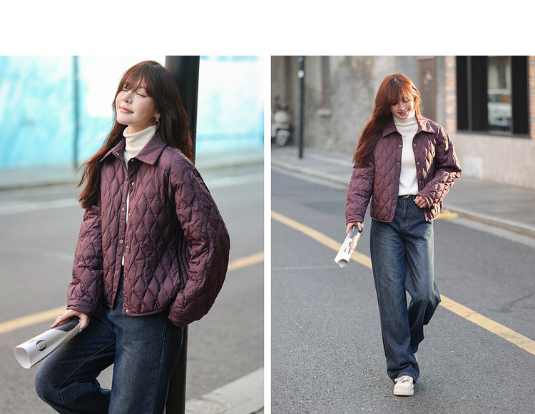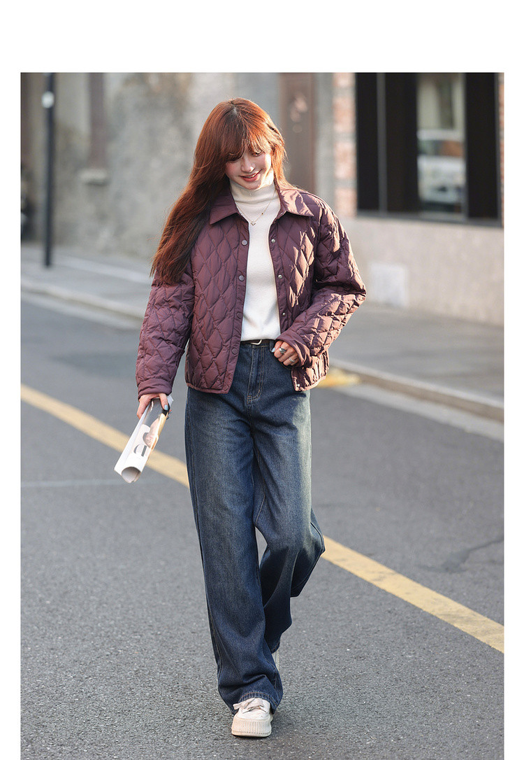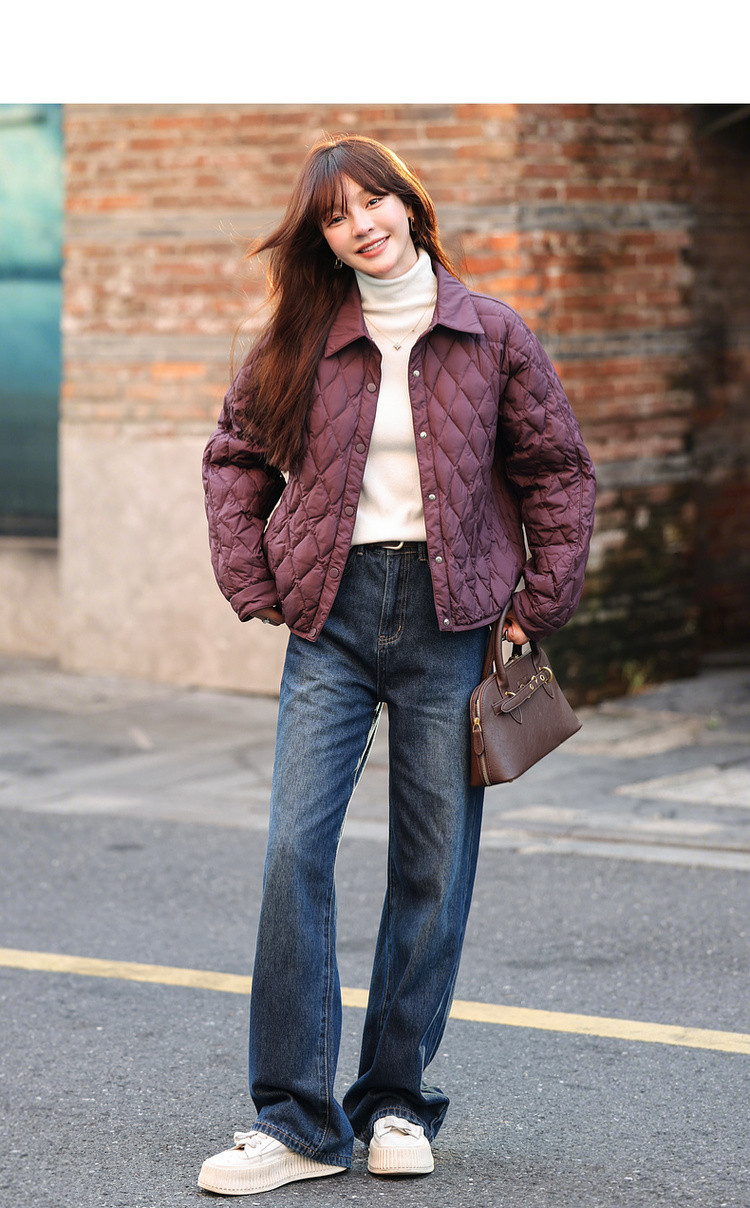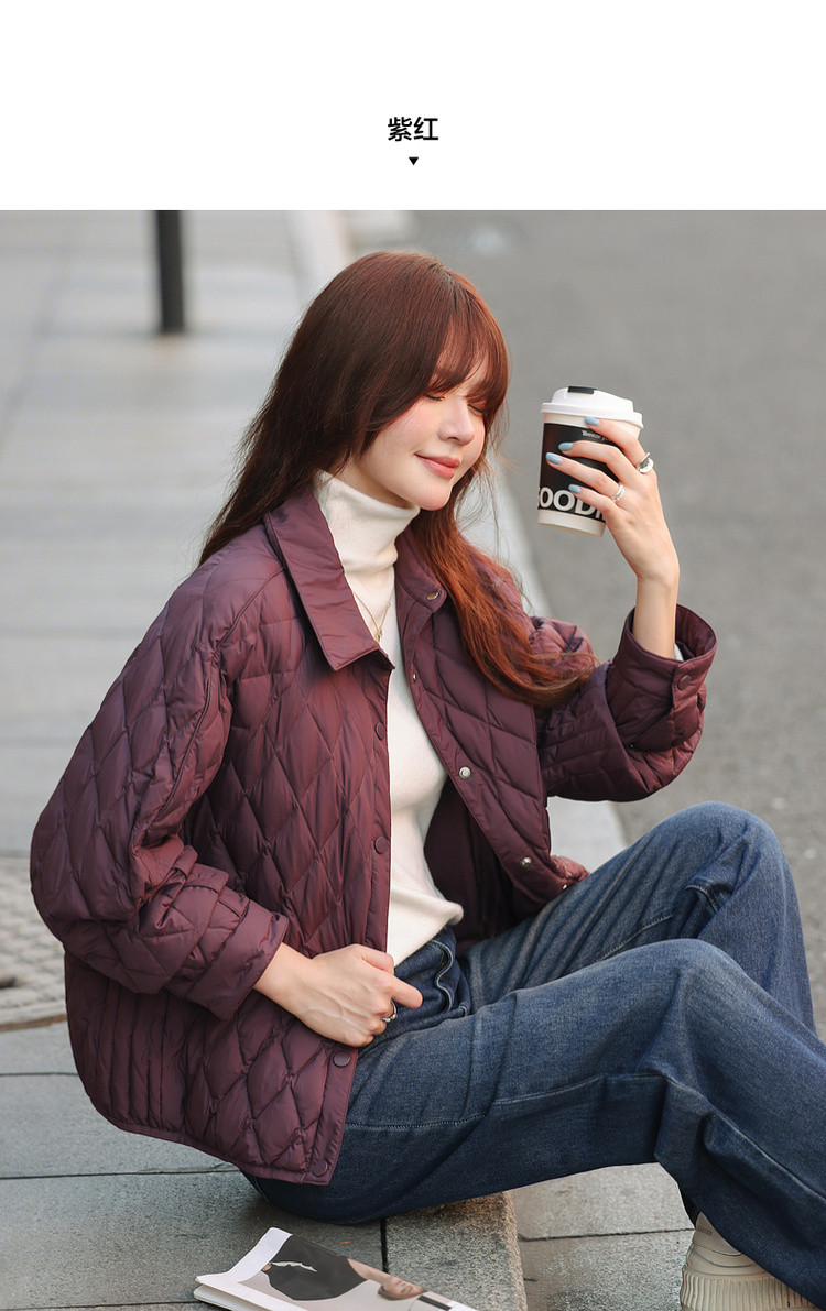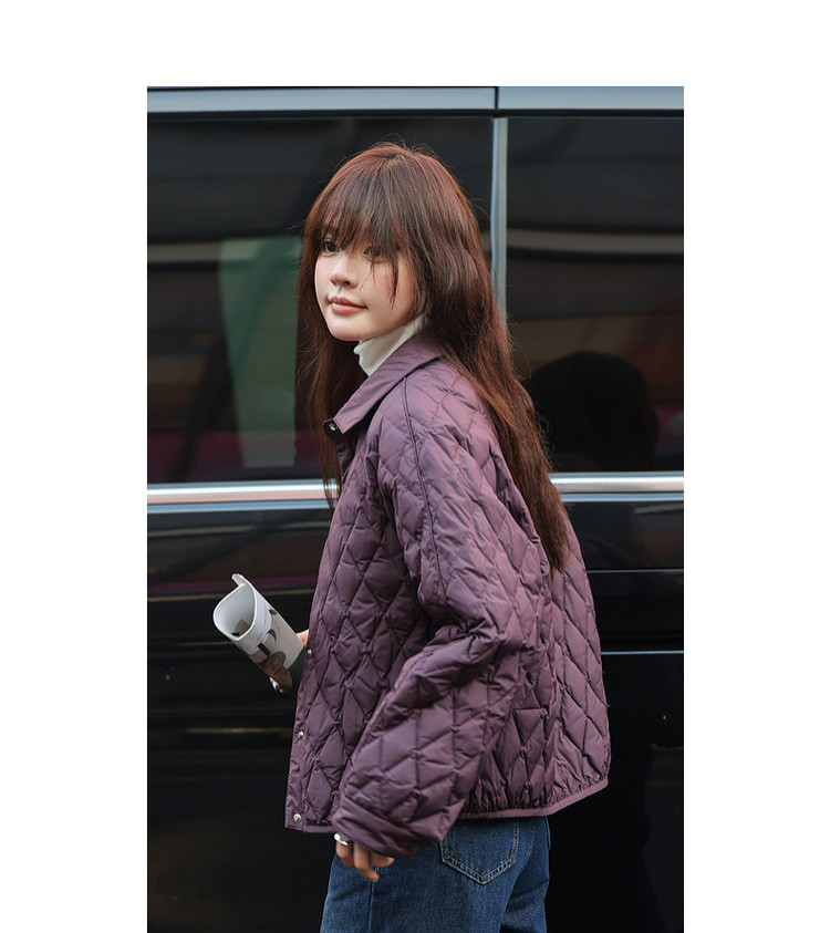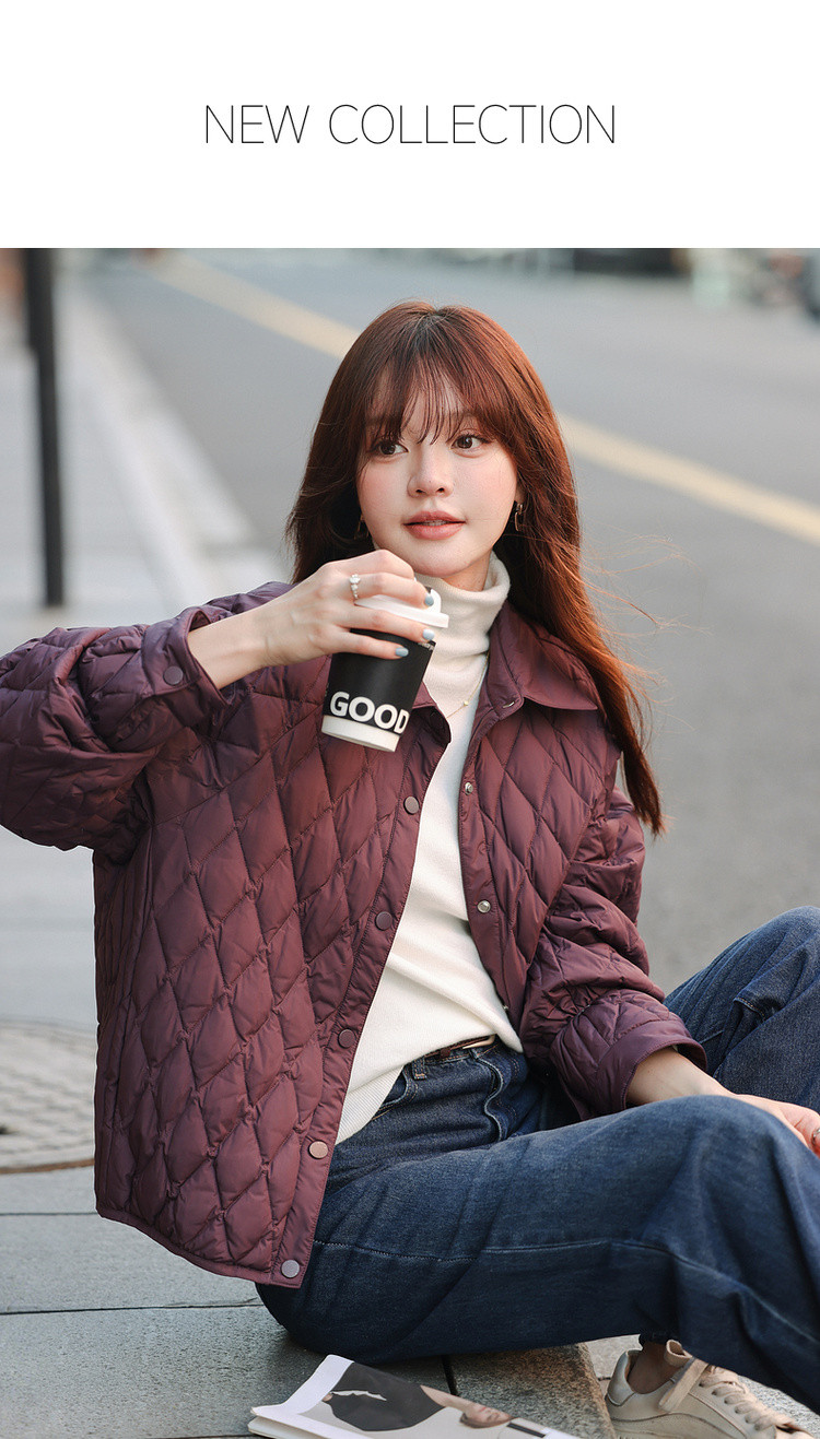 【轻暖小菱格】2025冬通勤翻领90鸭绒轻薄羽绒服简约宽松女式外套