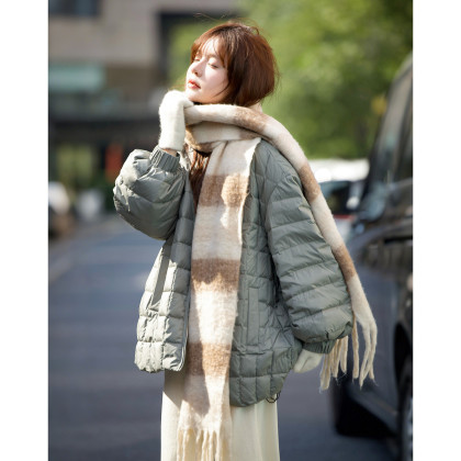 【都市暖羽】2025冬90鸭绒灯笼袖可调节下摆宽松中长款女式羽绒服
