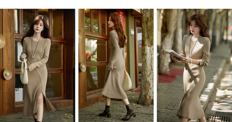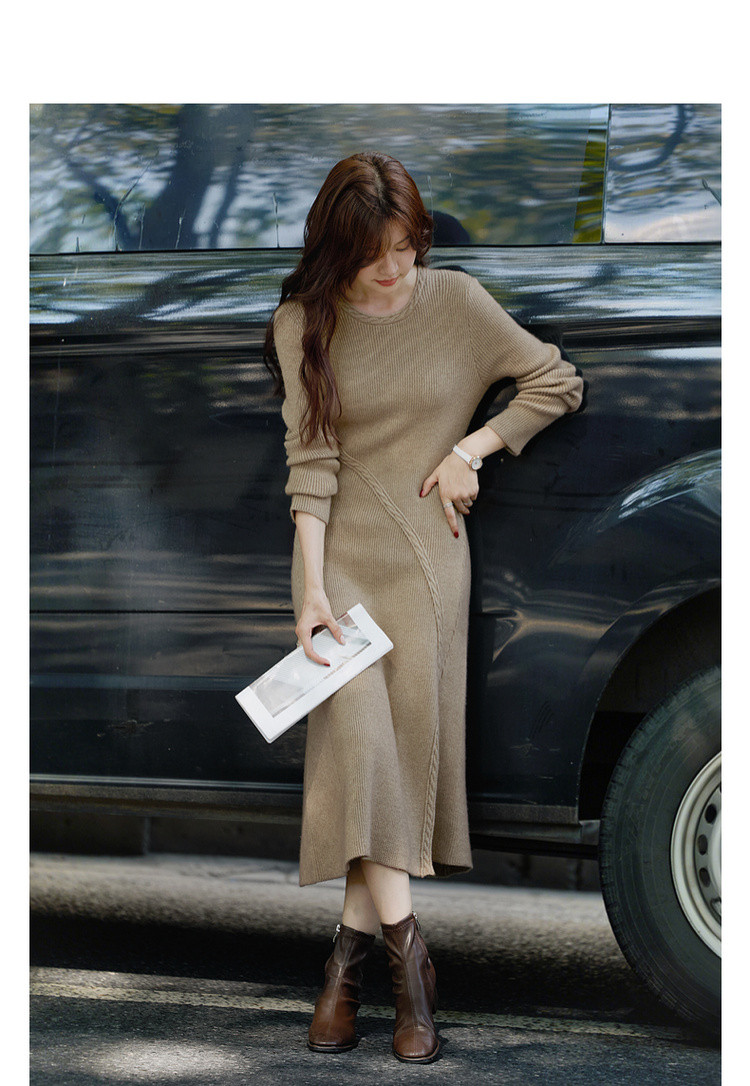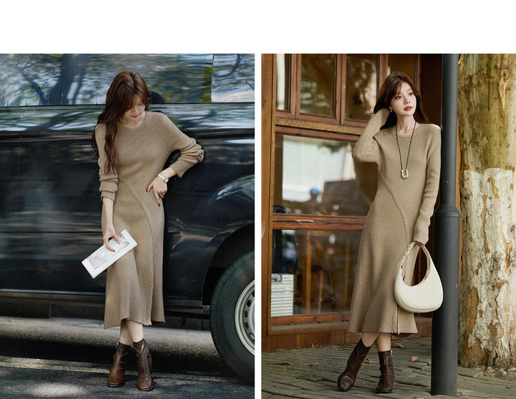 【温柔入冬】2025冬复古慵懒绞花收腰柔软舒适气质针织连衣裙女长款