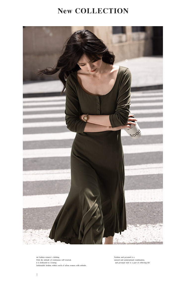 【气质大摆美人鱼】秋款 纯色百搭针织A摆针织连衣裙