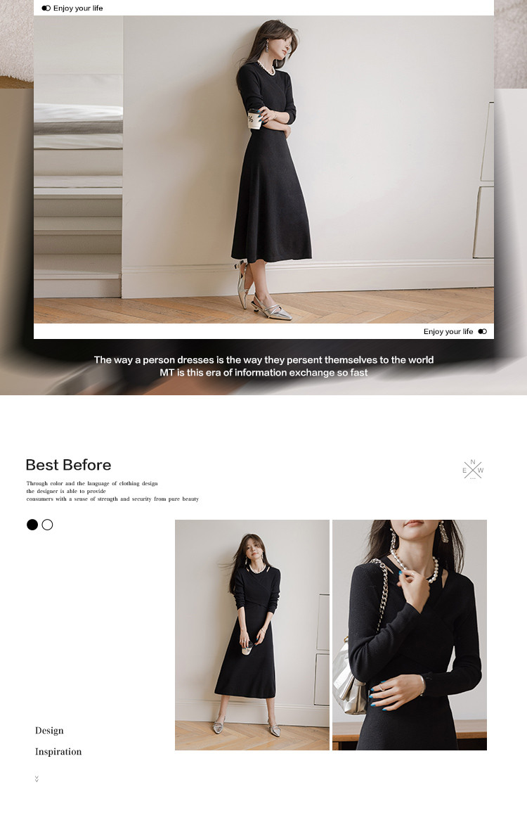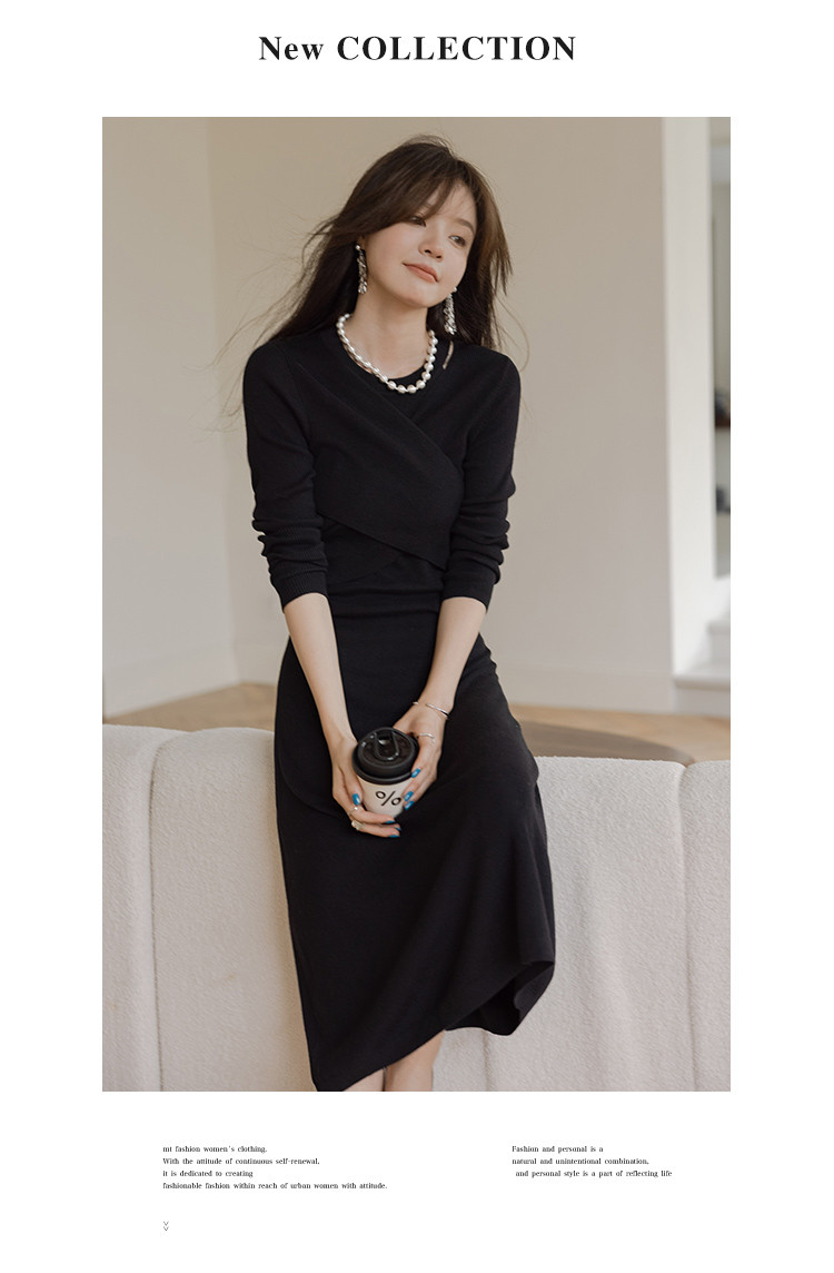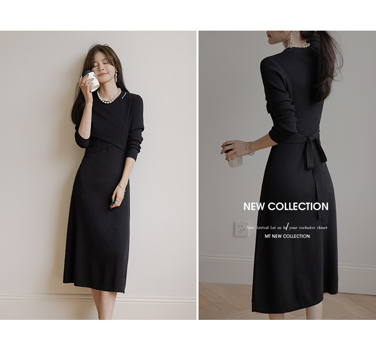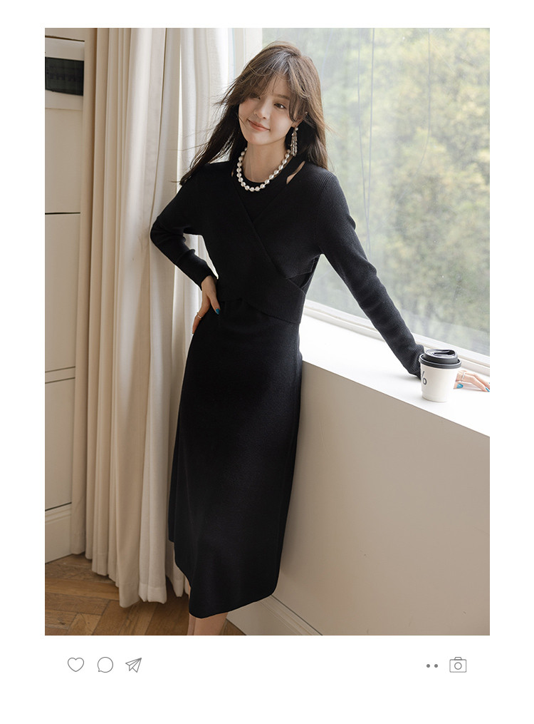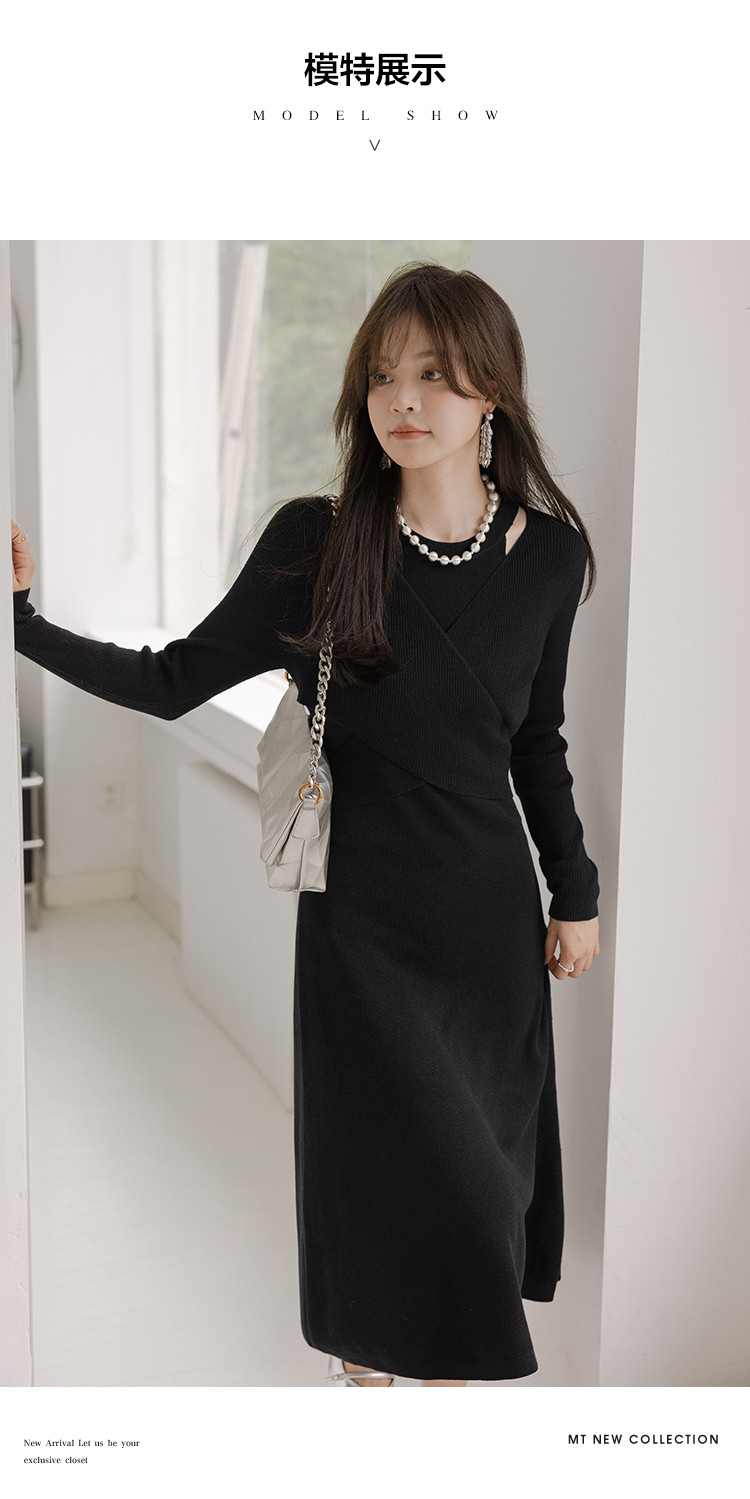 【法式精致优雅风】秋季款 法式浪漫绑带针织连衣裙