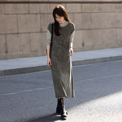 【小众酷飒风】秋款 弹力罗纹假两件扎染设计圆领长袖连衣裙