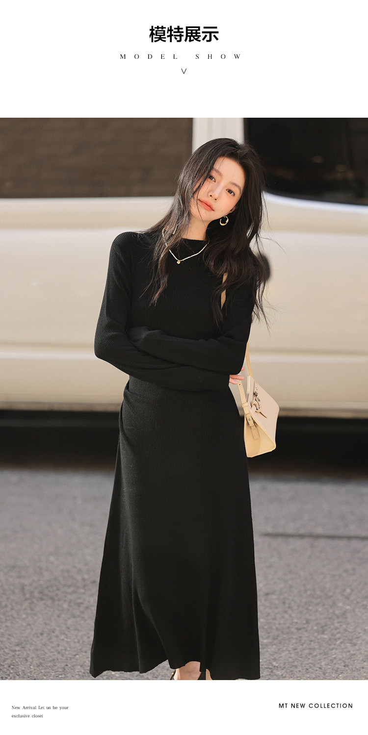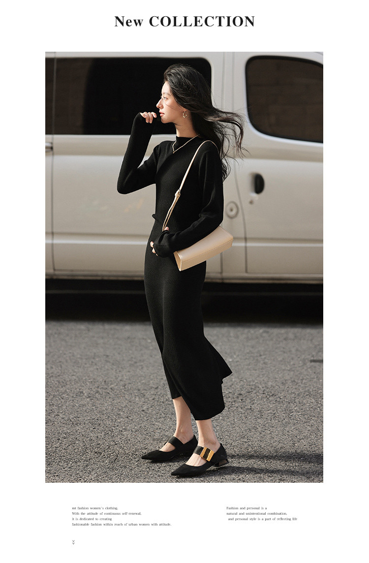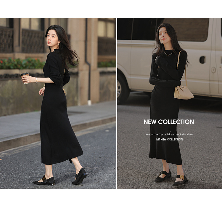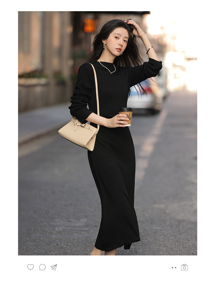 【时尚修身长裙】秋款半高领收腰长袖连衣裙