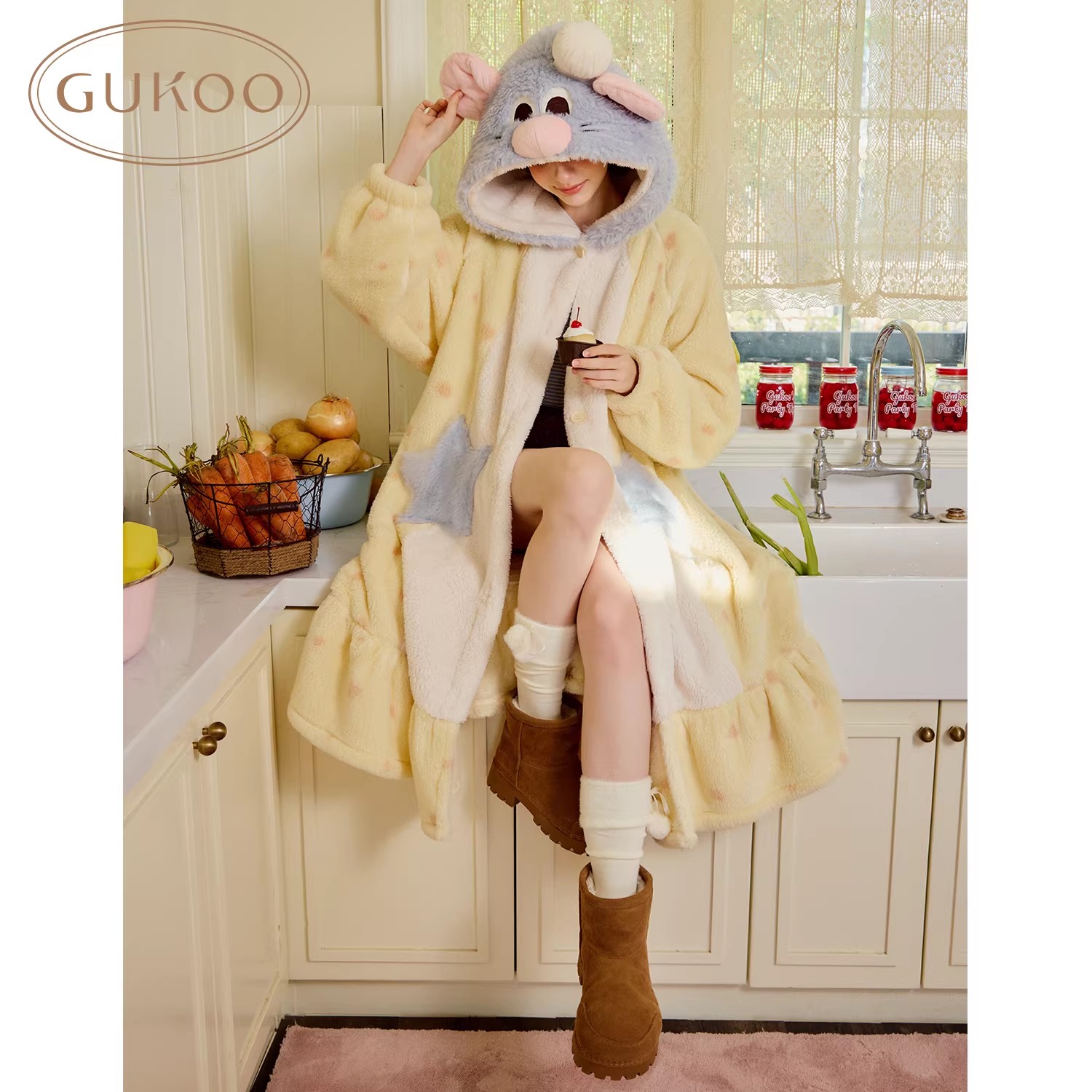 Gukoo/果壳睡袍女冬季料理鼠王联名新款毛绒保暖女士家居服睡袍D