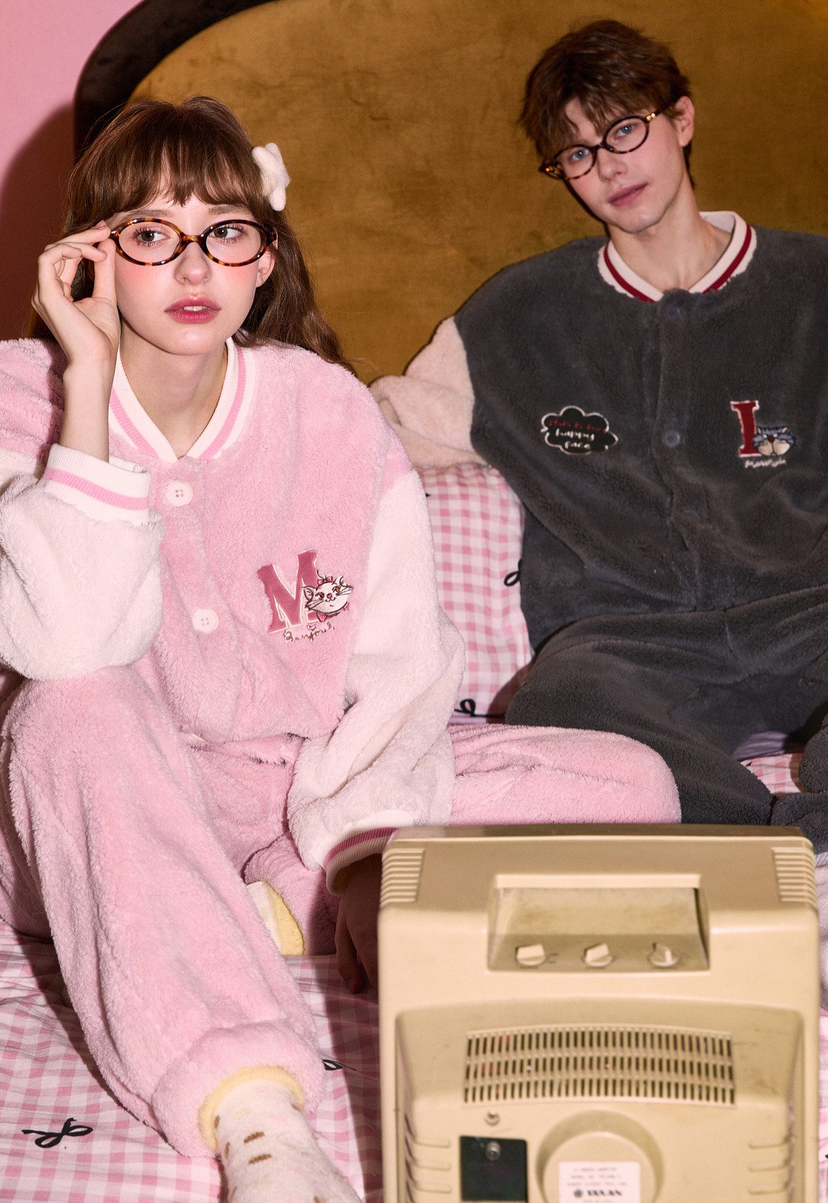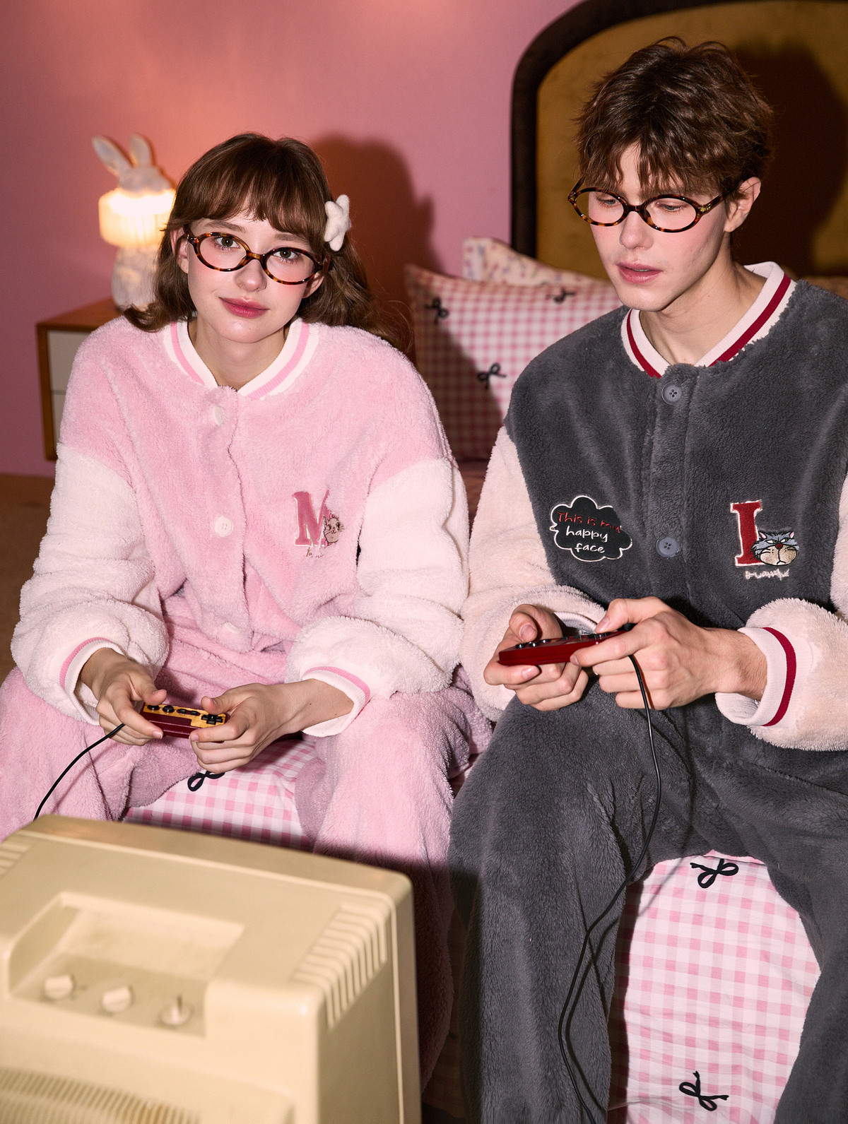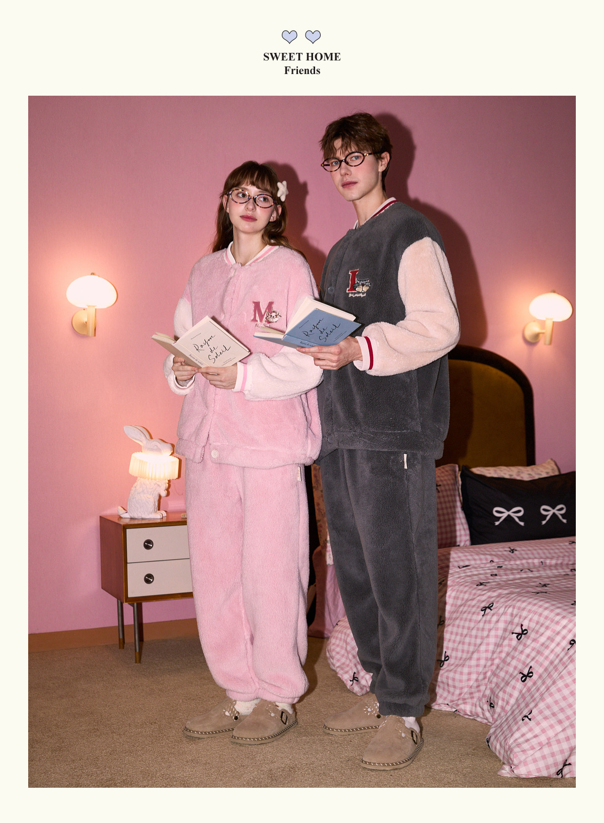 Gukoo/果壳情侣睡衣女冬迪士尼新款珊瑚绒家居服男棒球服套装D
