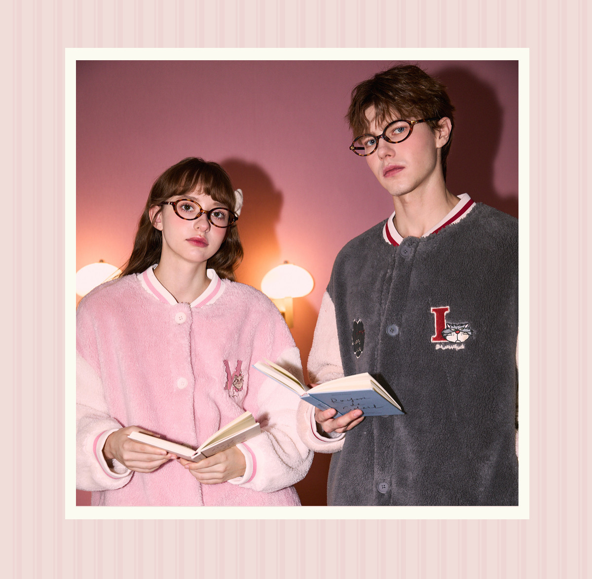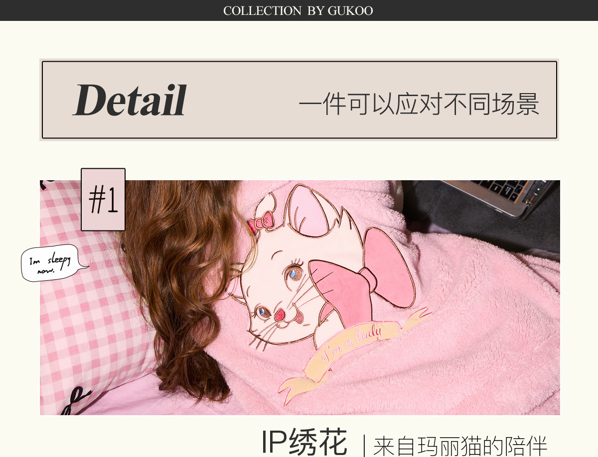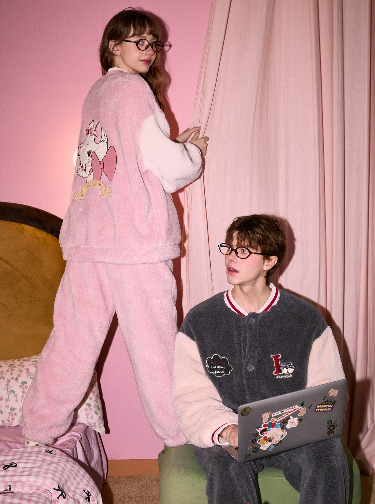 Gukoo/果壳情侣睡衣女冬迪士尼新款珊瑚绒家居服男棒球服套装D