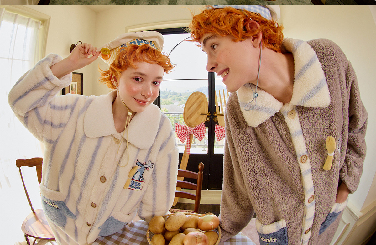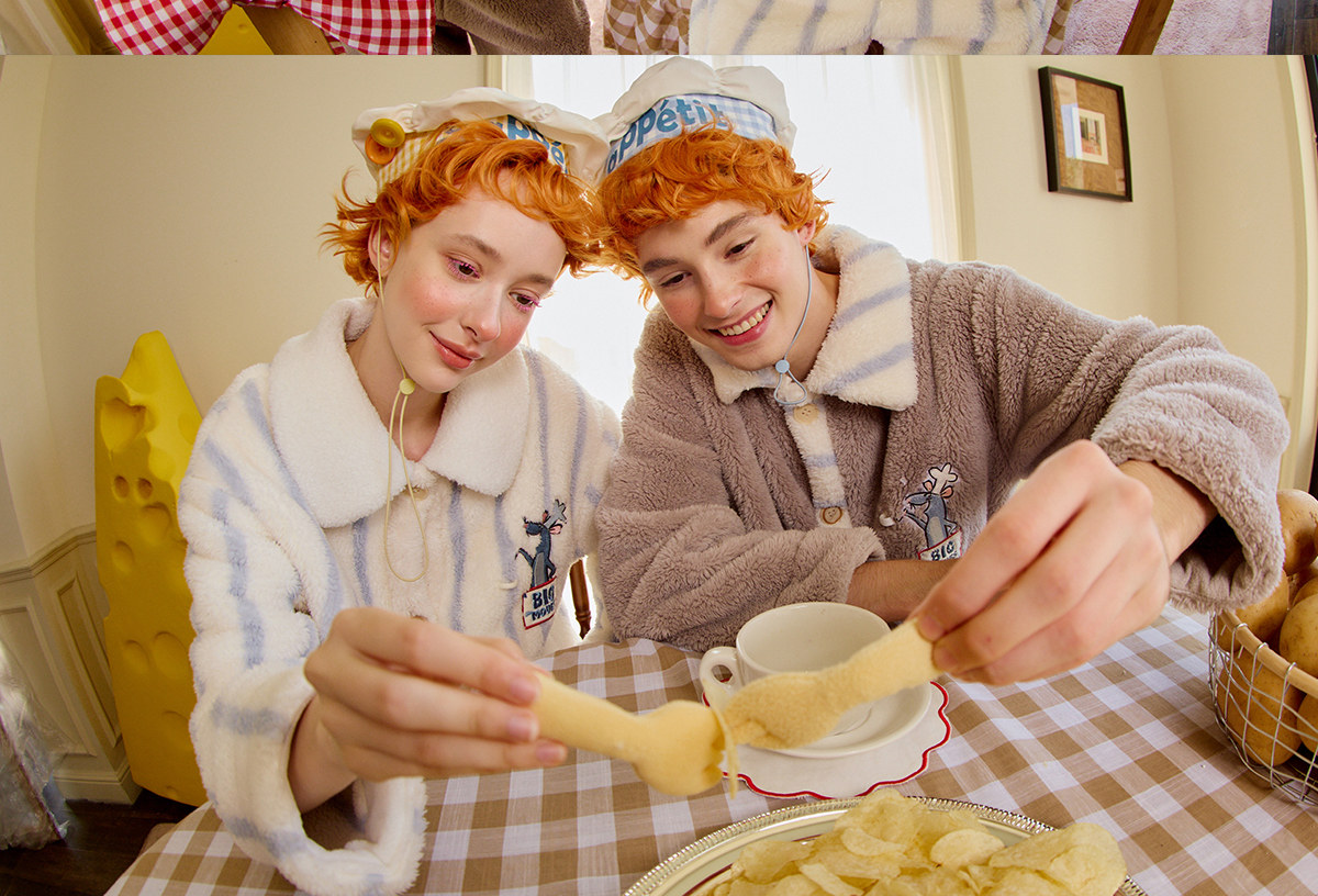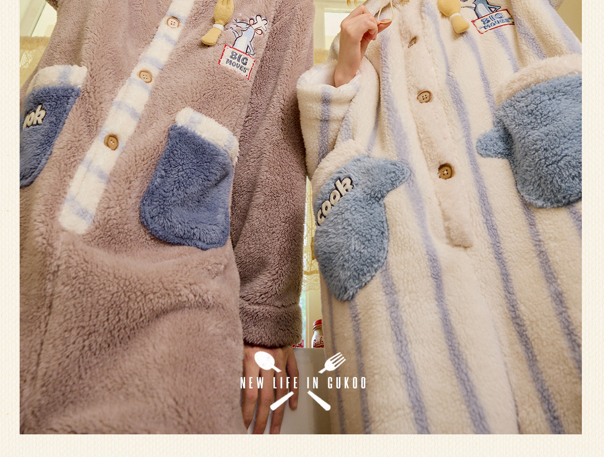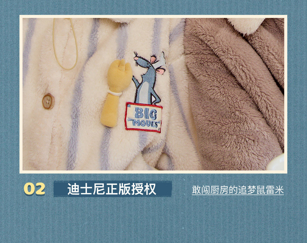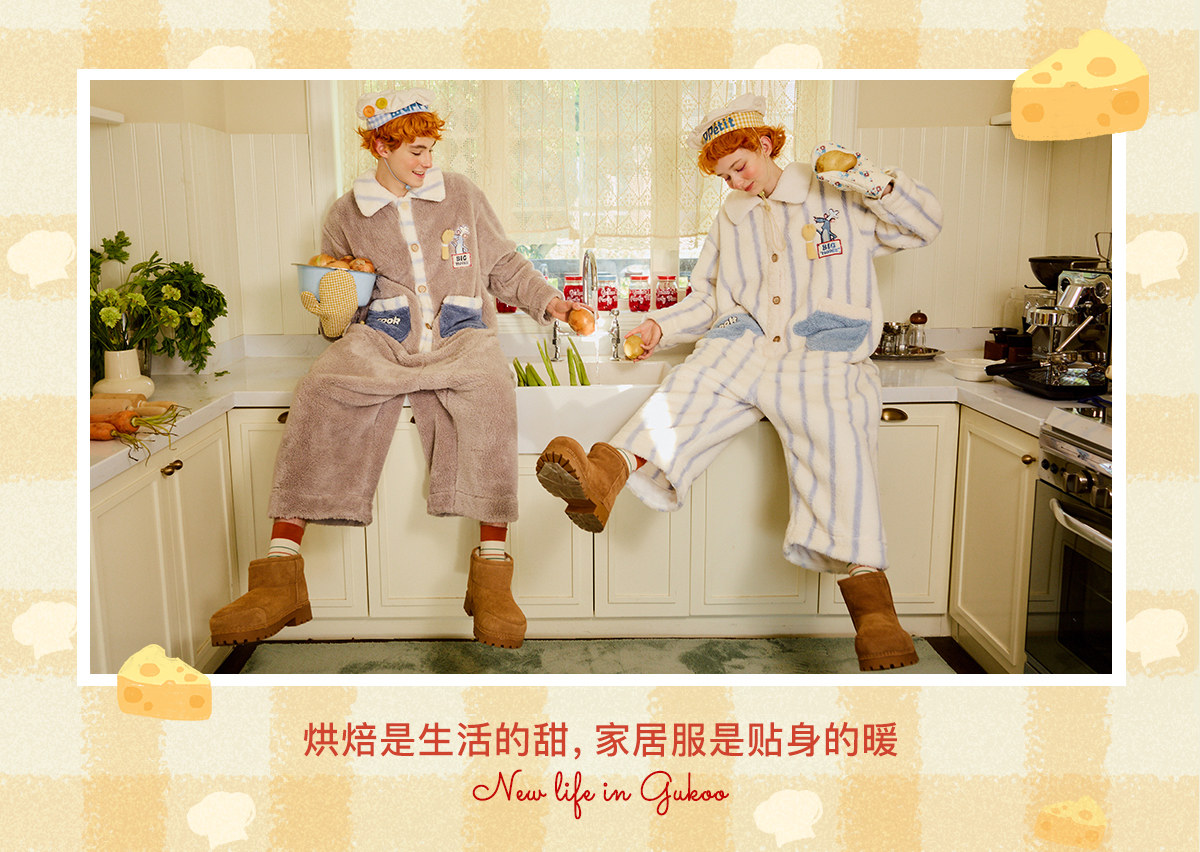 Gukoo/果壳情侣睡衣冬季珊瑚绒新款料理鼠王联名家居服连体衣D
