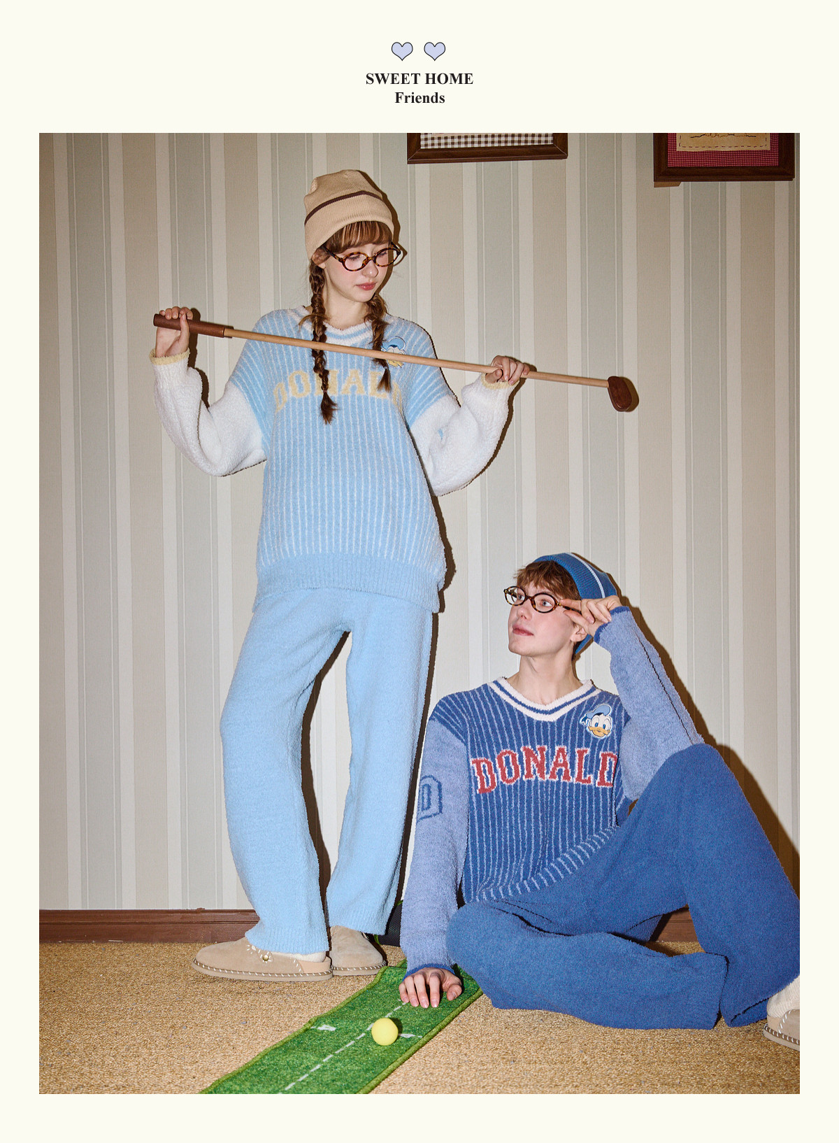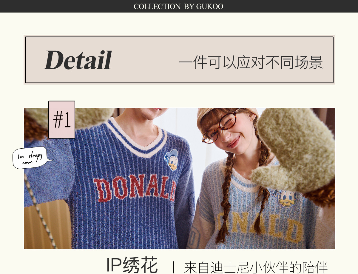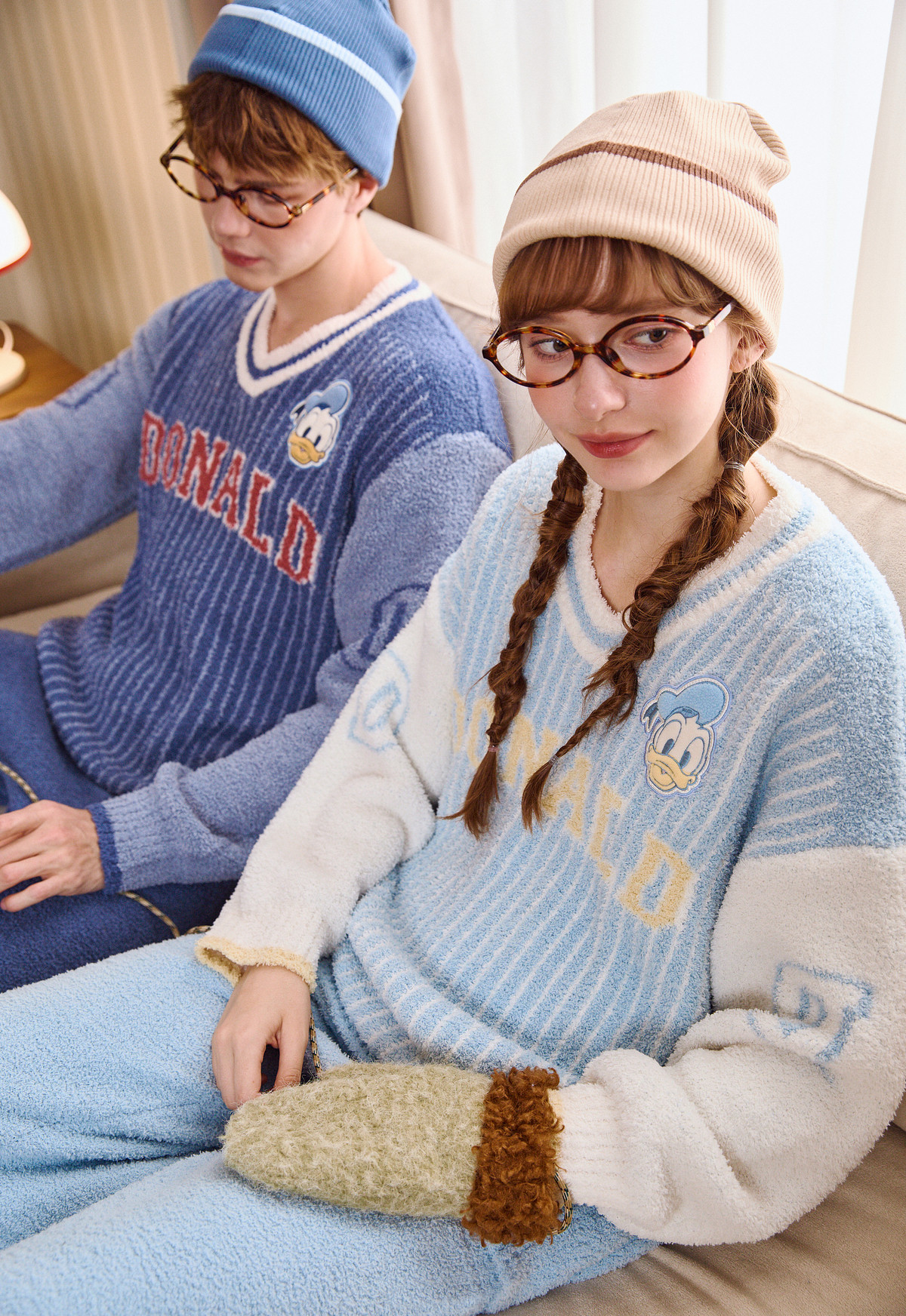 Gukoo/果壳情侣睡衣冬季半边绒保暖新款迪士尼联名女家居服套装D