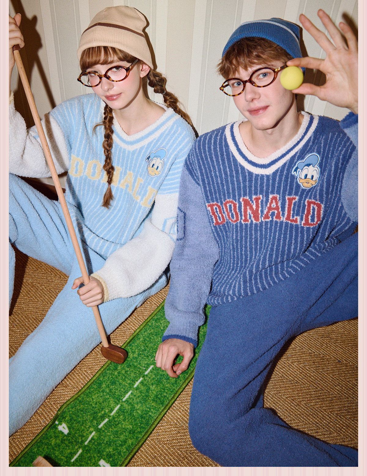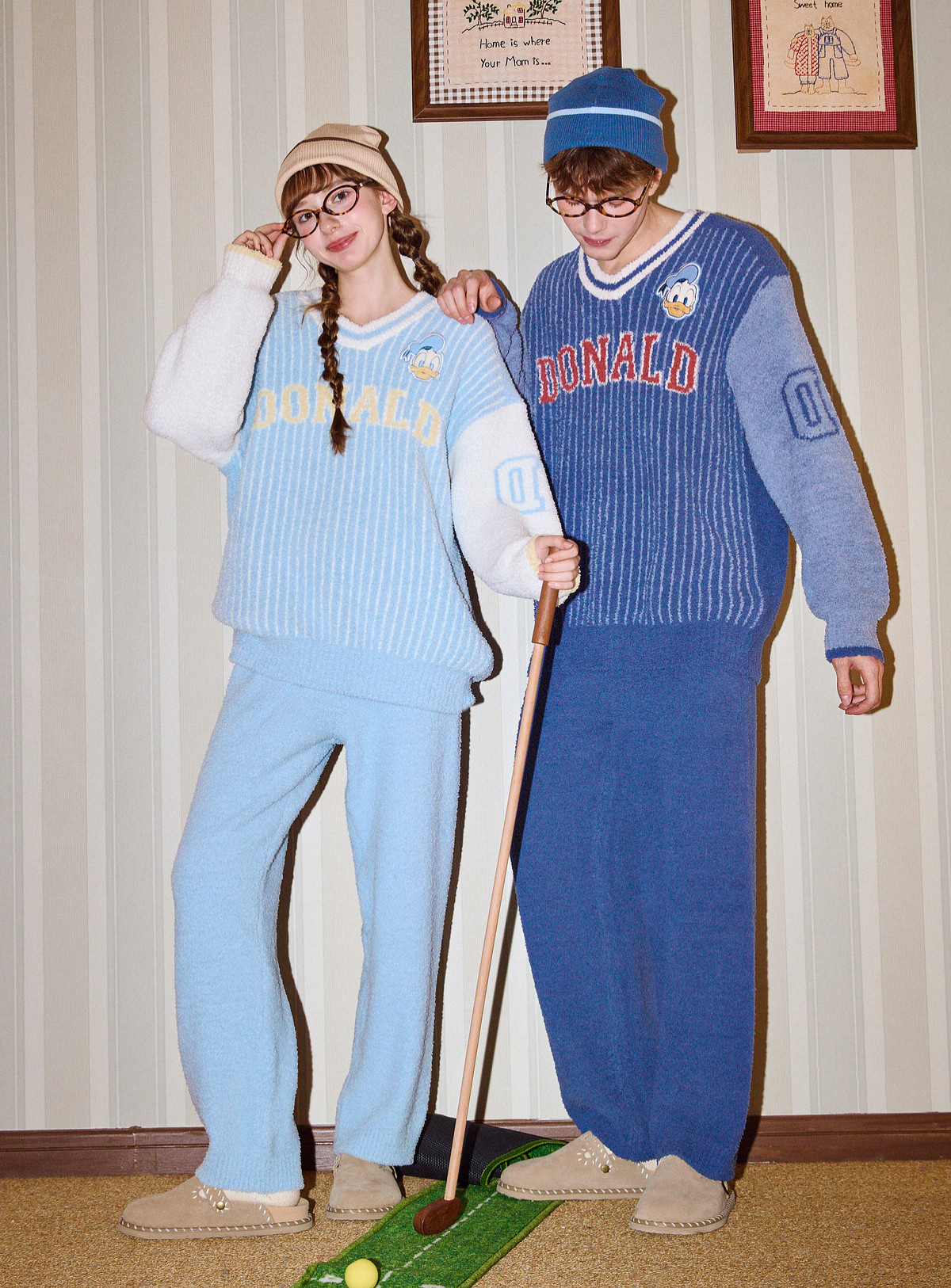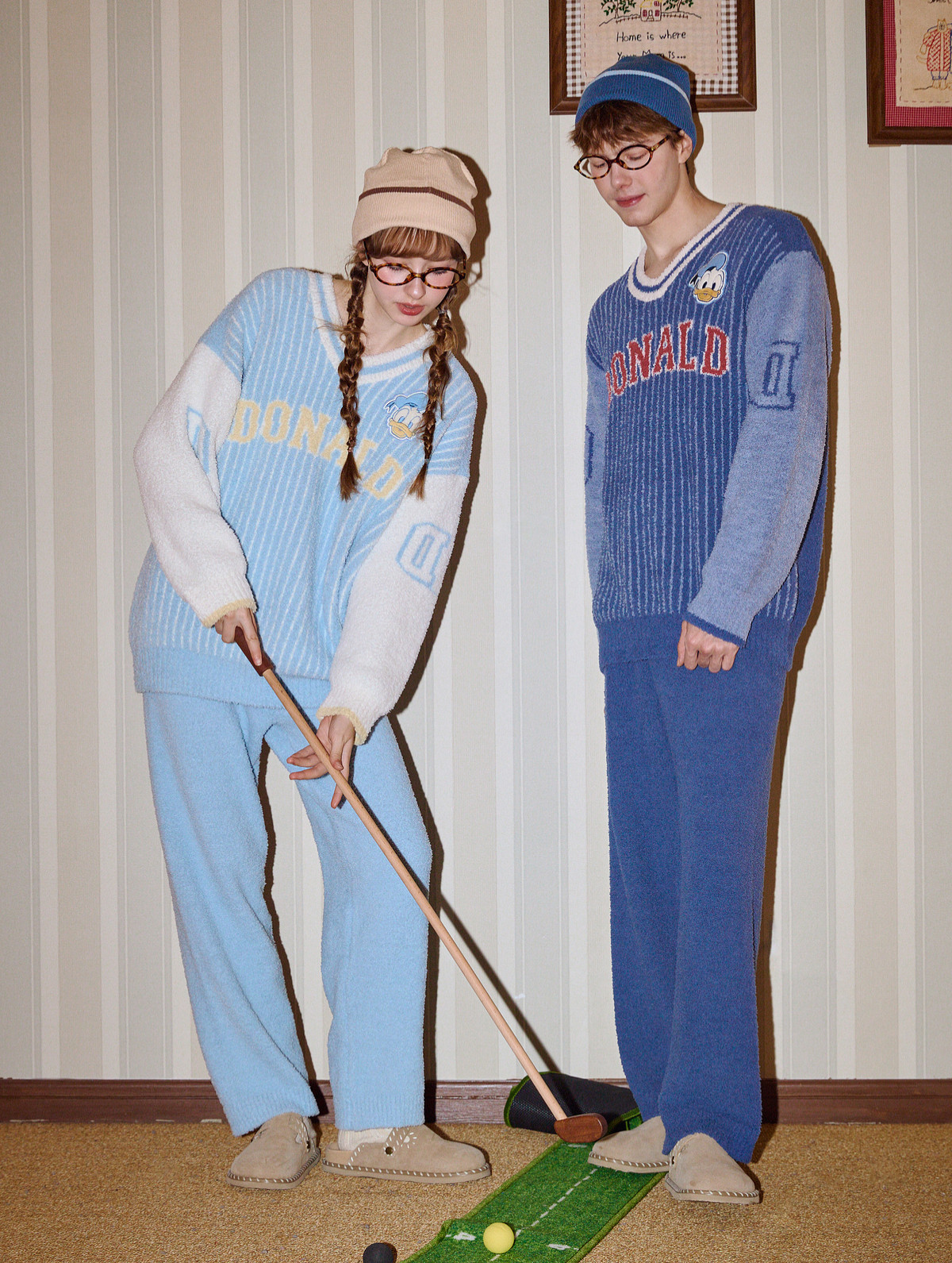 Gukoo/果壳情侣睡衣冬季半边绒保暖新款迪士尼联名女家居服套装D
