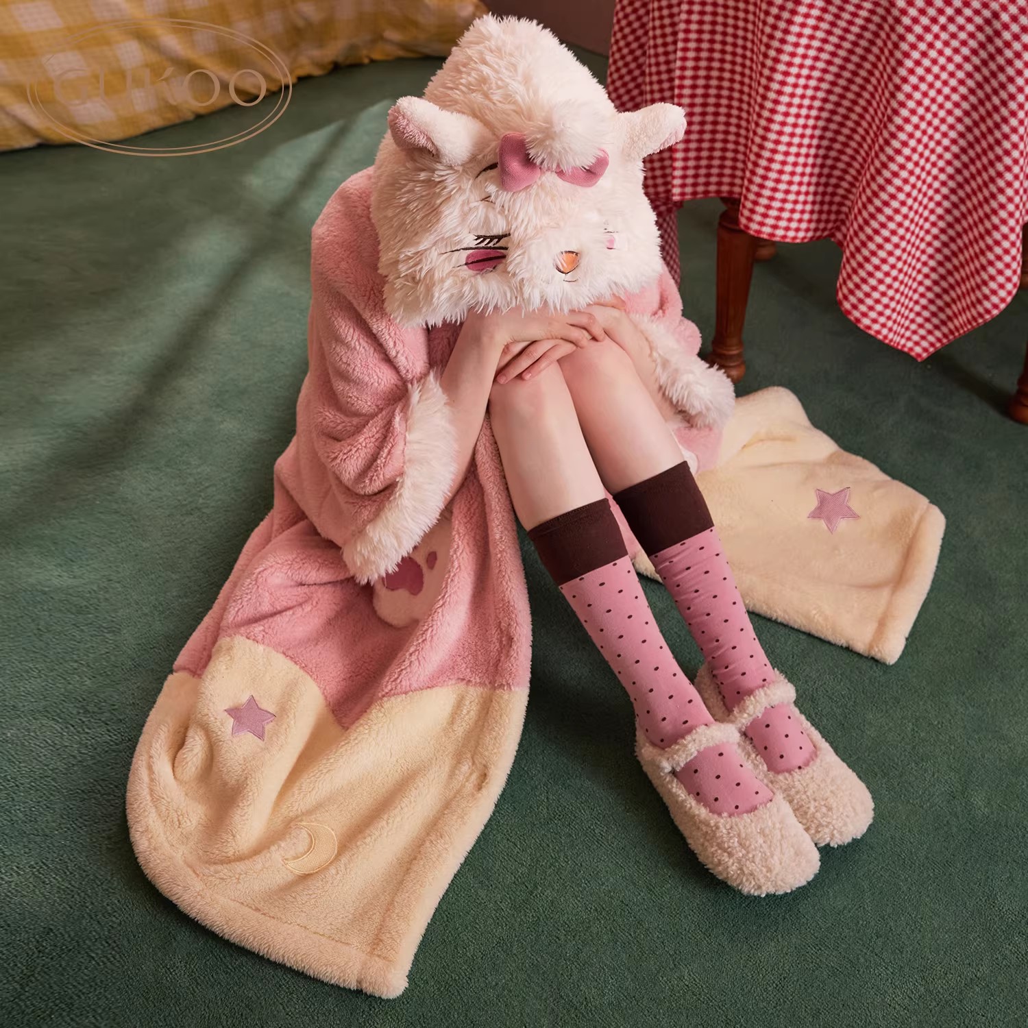 Gukoo/果壳睡袍冬季毛绒保暖新款可爱玛丽猫联名女士家居服睡袍D