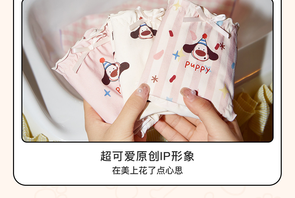 Gukoo/果壳内裤女春夏轰轰小狗印花三角裤新款抗菌纯棉裆女士内裤