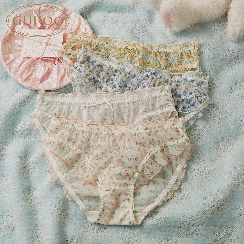 Gukoo/果壳内裤女春夏满印新款网纱抗菌纯棉裆女士内裤组合