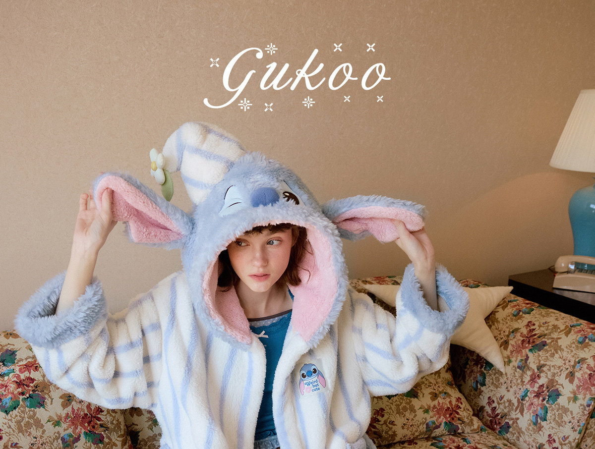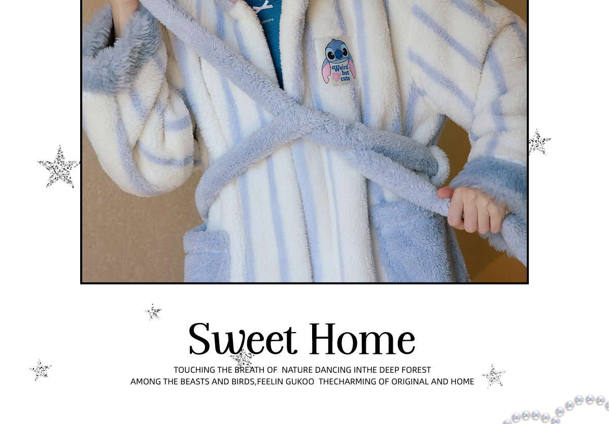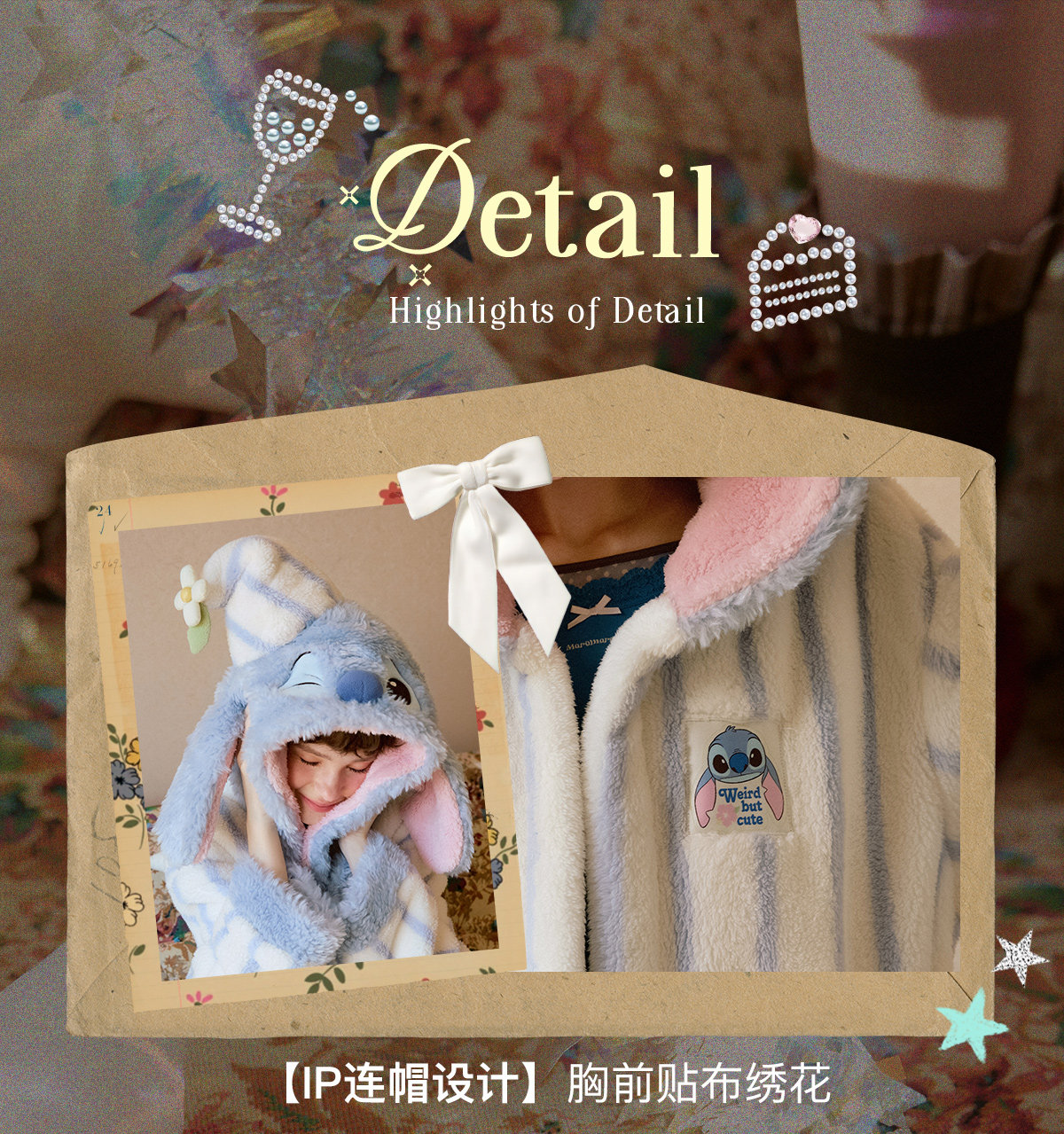 Gukoo/果壳睡袍女冬季毛绒新款史迪仔联名女士家居服浴袍睡袍D