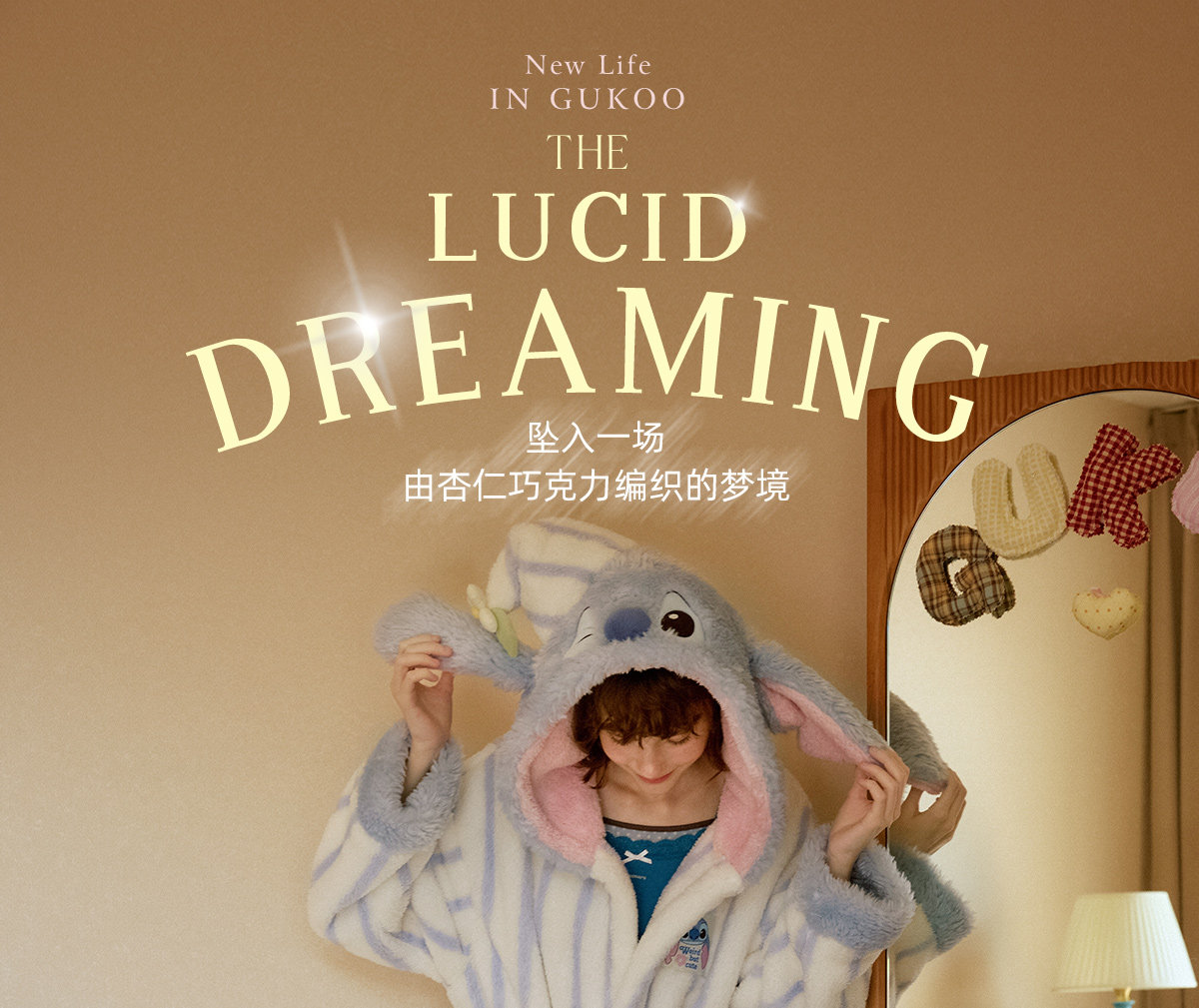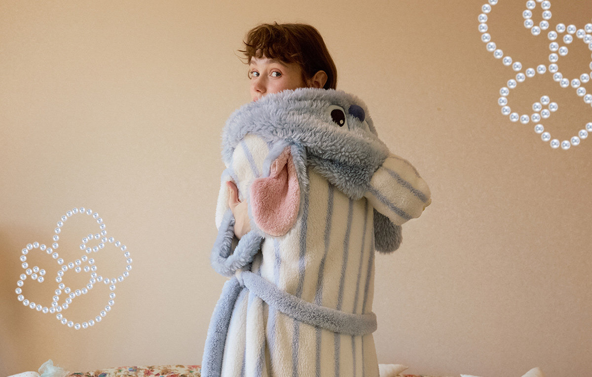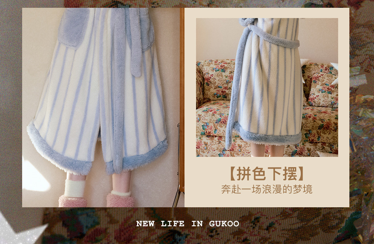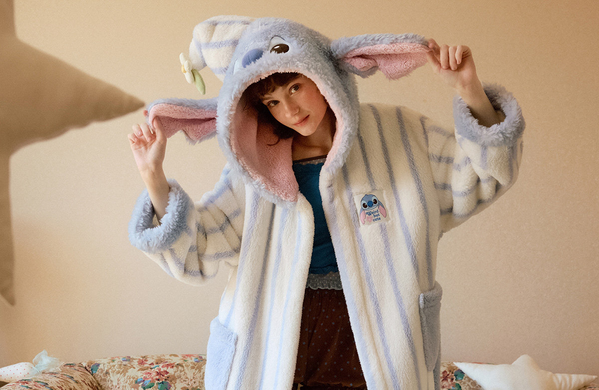 Gukoo/果壳睡袍女冬季毛绒新款史迪仔联名女士家居服浴袍睡袍D