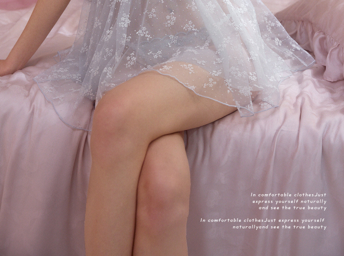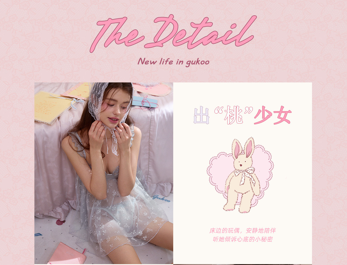 Gukoo/果壳睡衣女夏季纯色网纱睡裙新款性感女士家居服套装E
