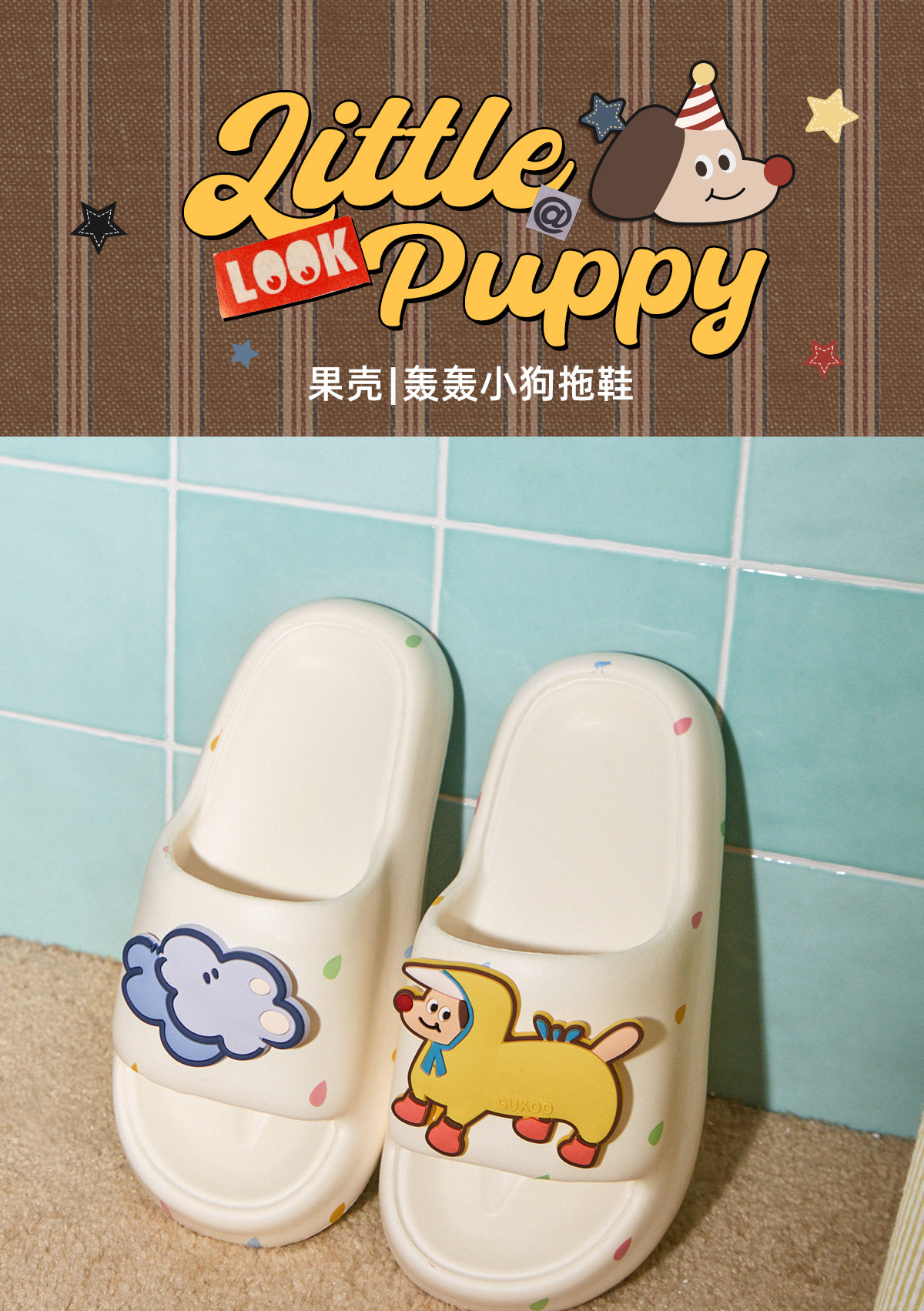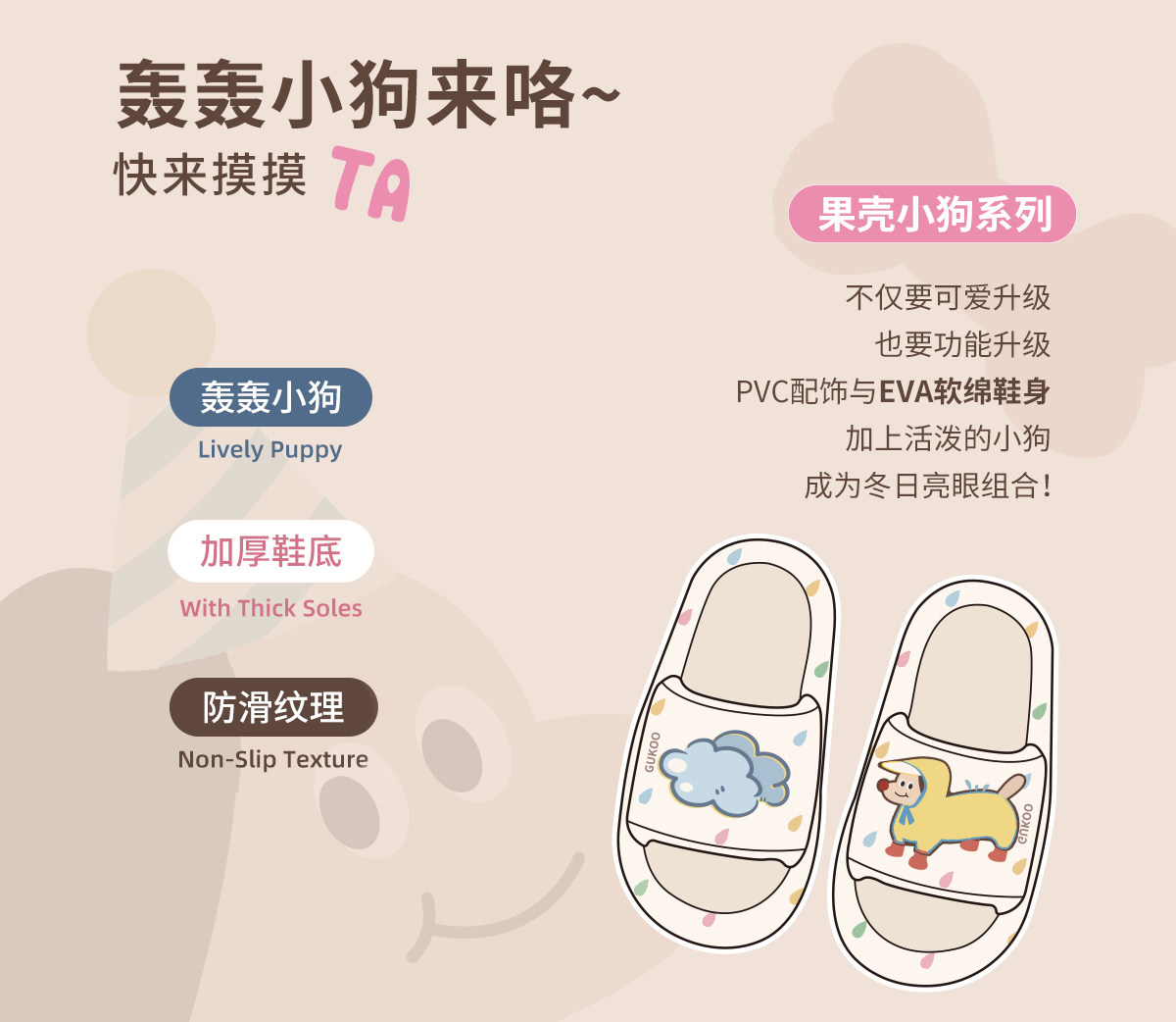 Gukoo/果壳拖鞋女夏季轰轰小狗新款可爱厚底踩屎感女士居家凉拖鞋