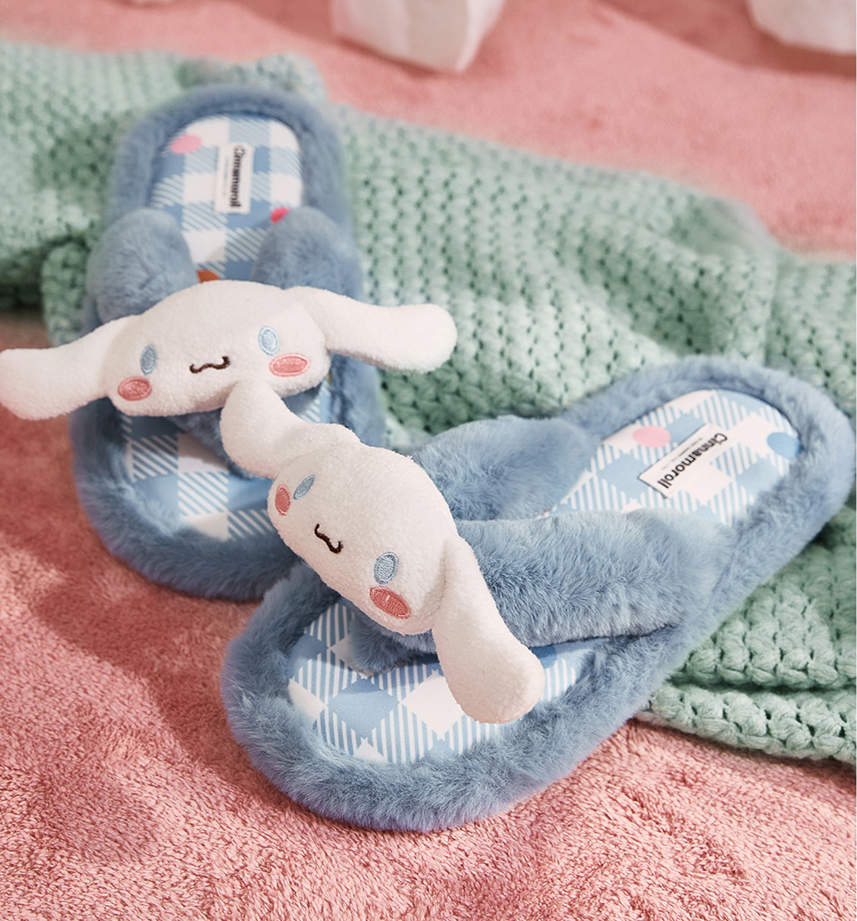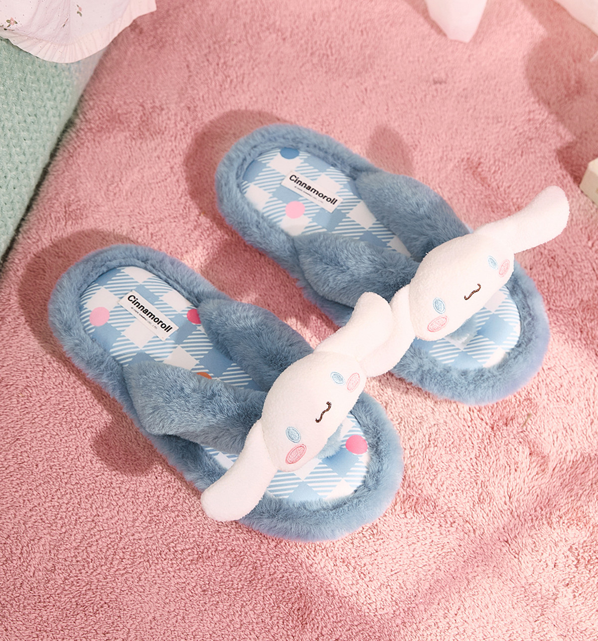 Gukoo/果壳拖鞋女春秋三丽鸥联名人字拖新款毛绒平底女士居家拖鞋