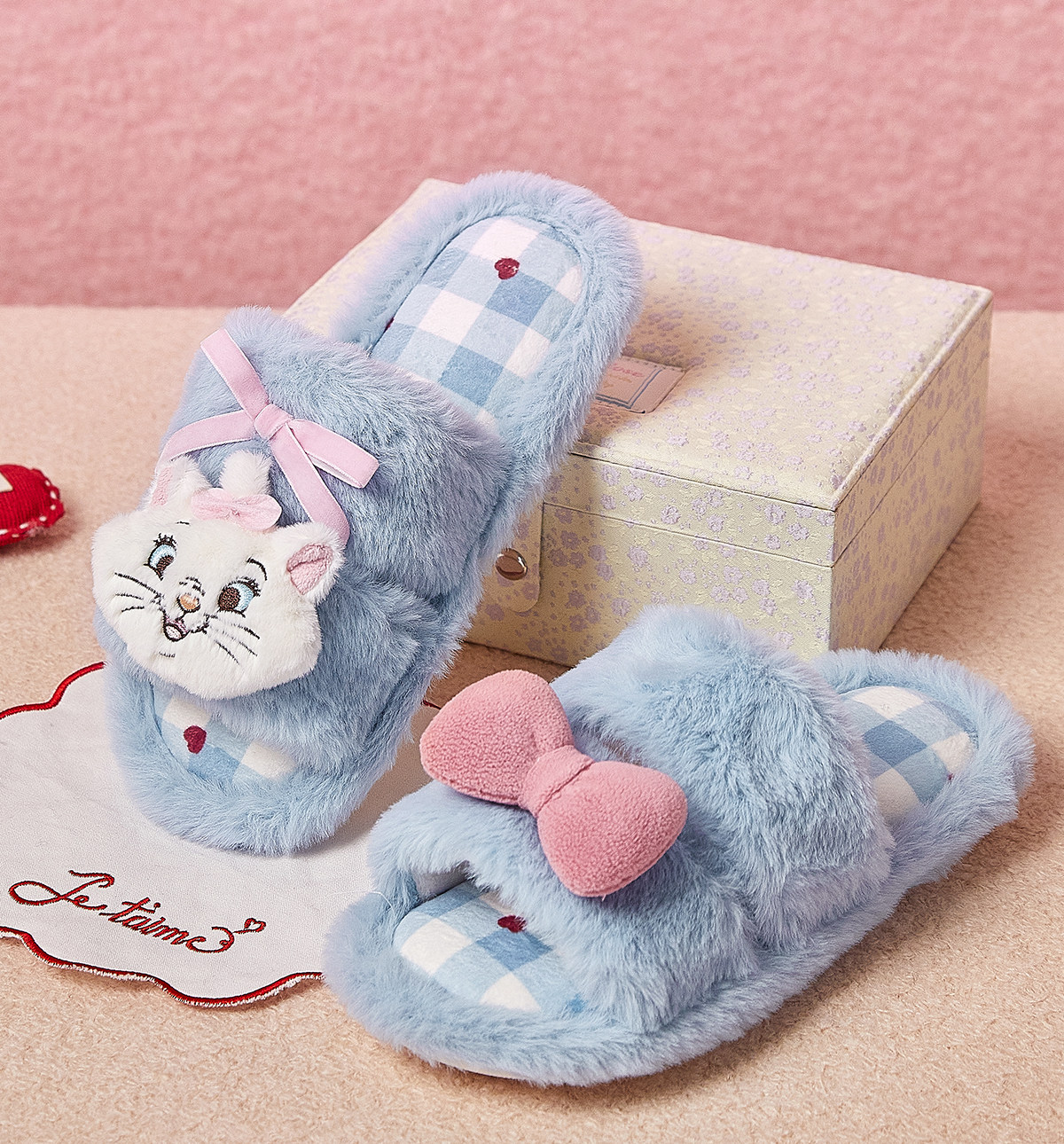 Gukoo/果壳拖鞋女冬季玛丽猫联名新款毛绒保暖女士居家毛毛拖鞋