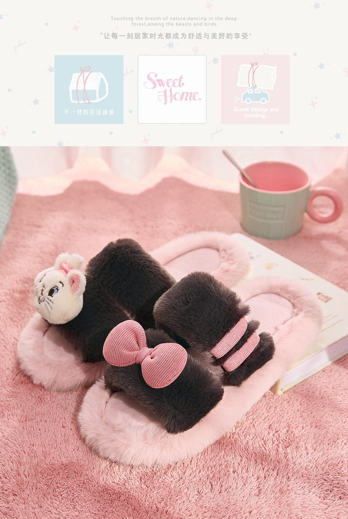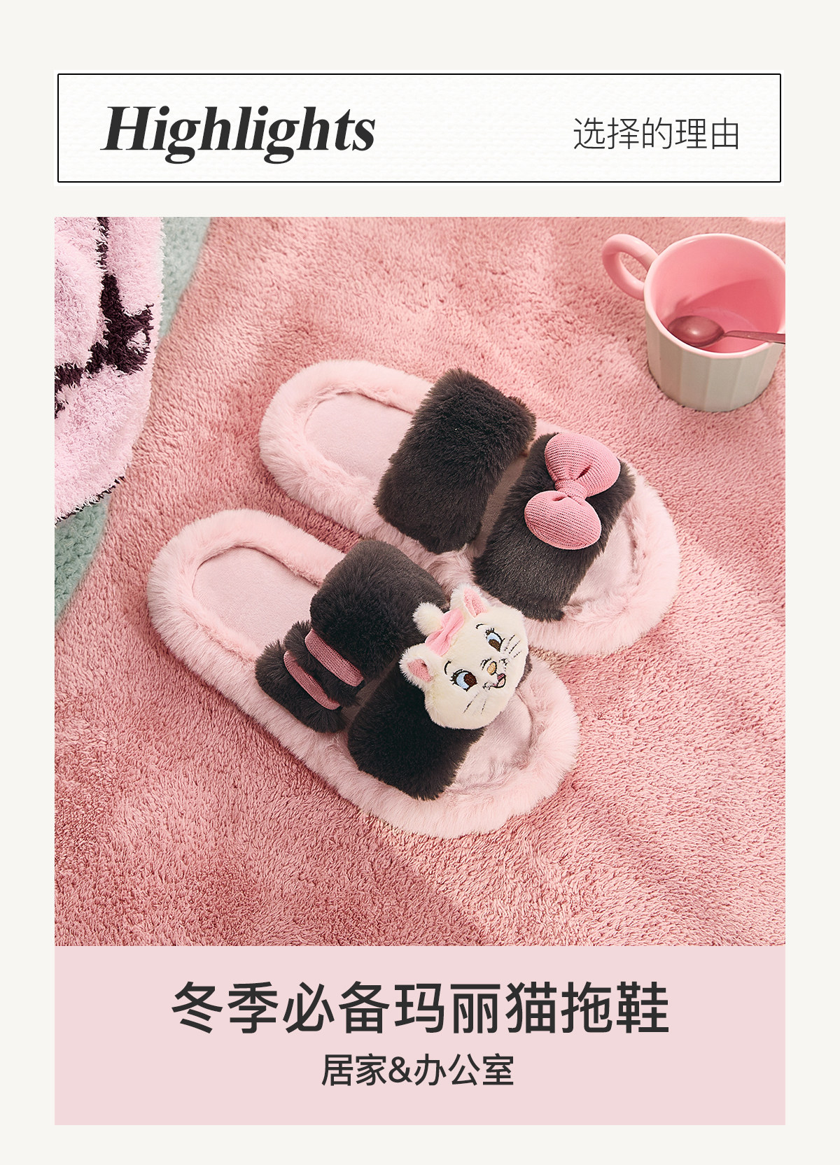 Gukoo/果壳拖鞋女冬季毛绒保暖新款玛丽猫联名可爱女士居家毛毛拖