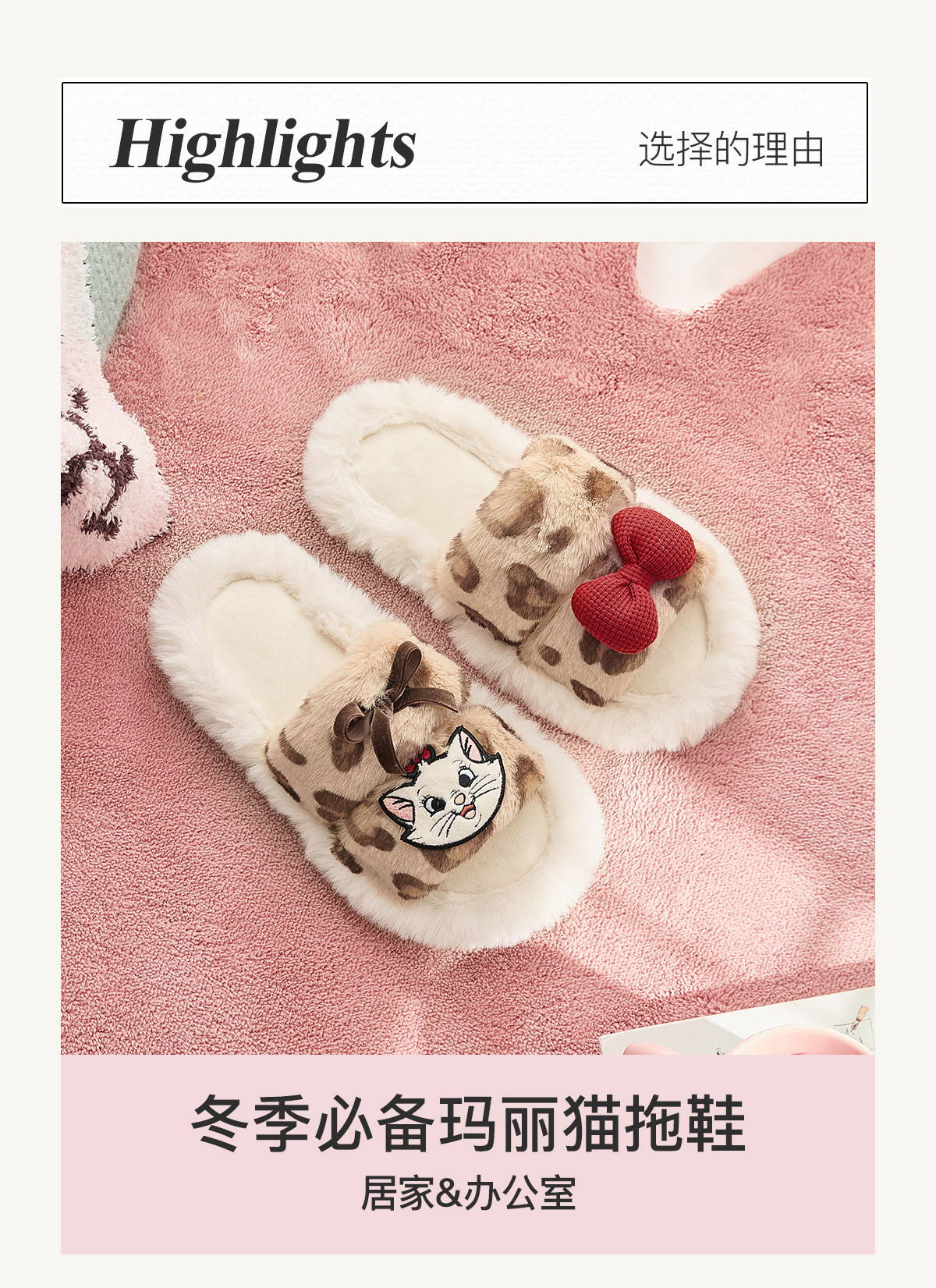 Gukoo/果壳拖鞋女冬季毛绒保暖新款玛丽猫联名女士居家棉拖鞋
