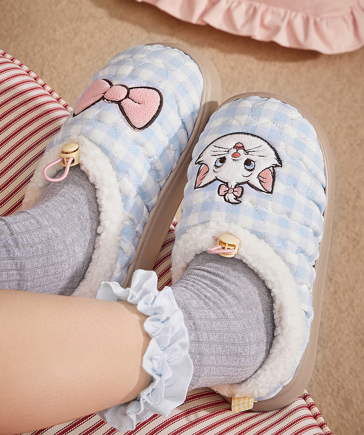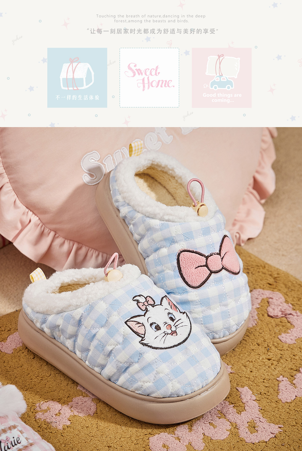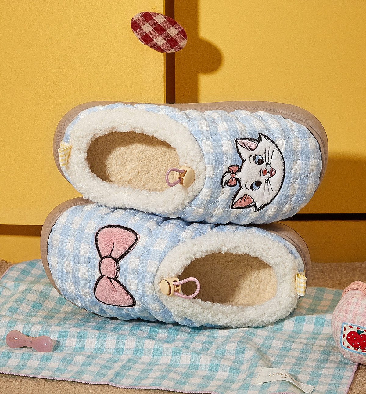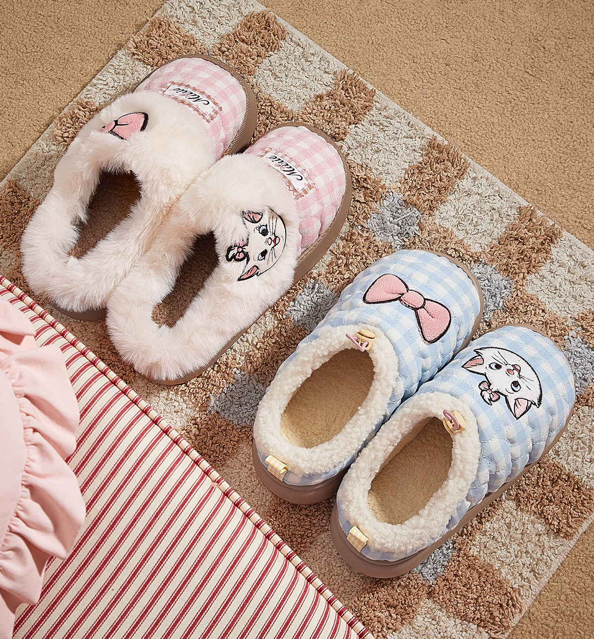 Gukoo/果壳拖鞋女冬季玛丽猫联名新款格子加绒保暖女士居家棉拖鞋