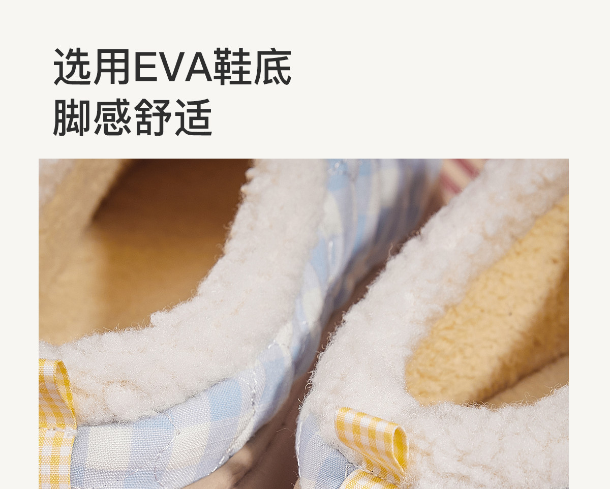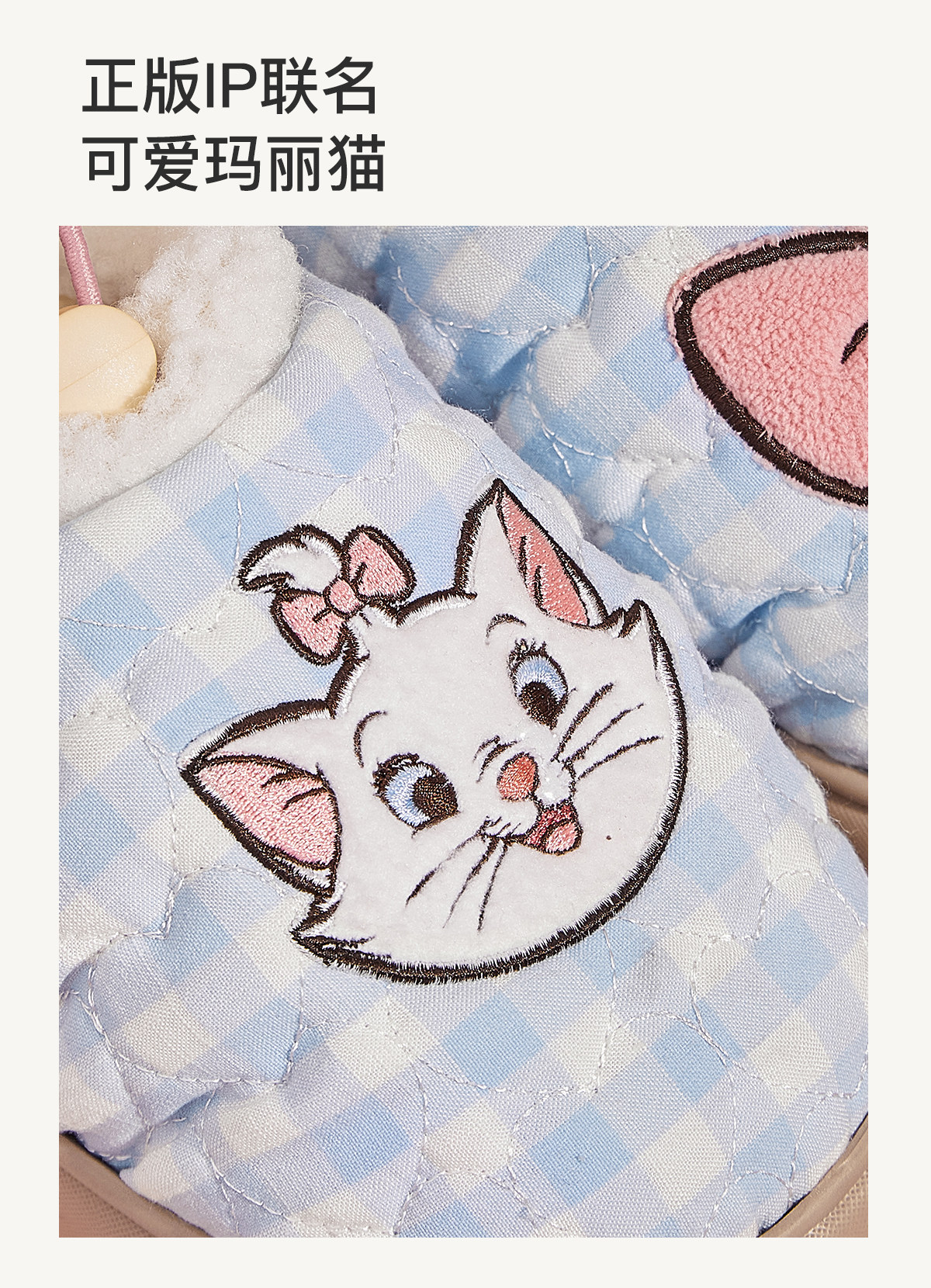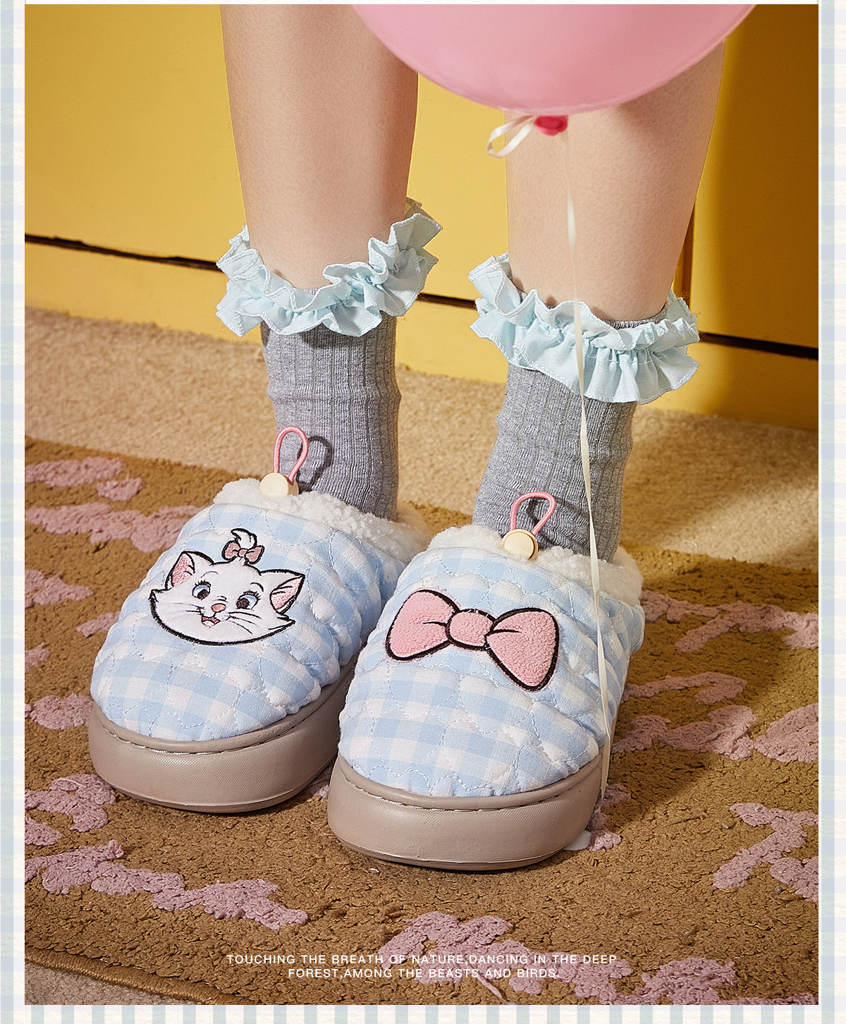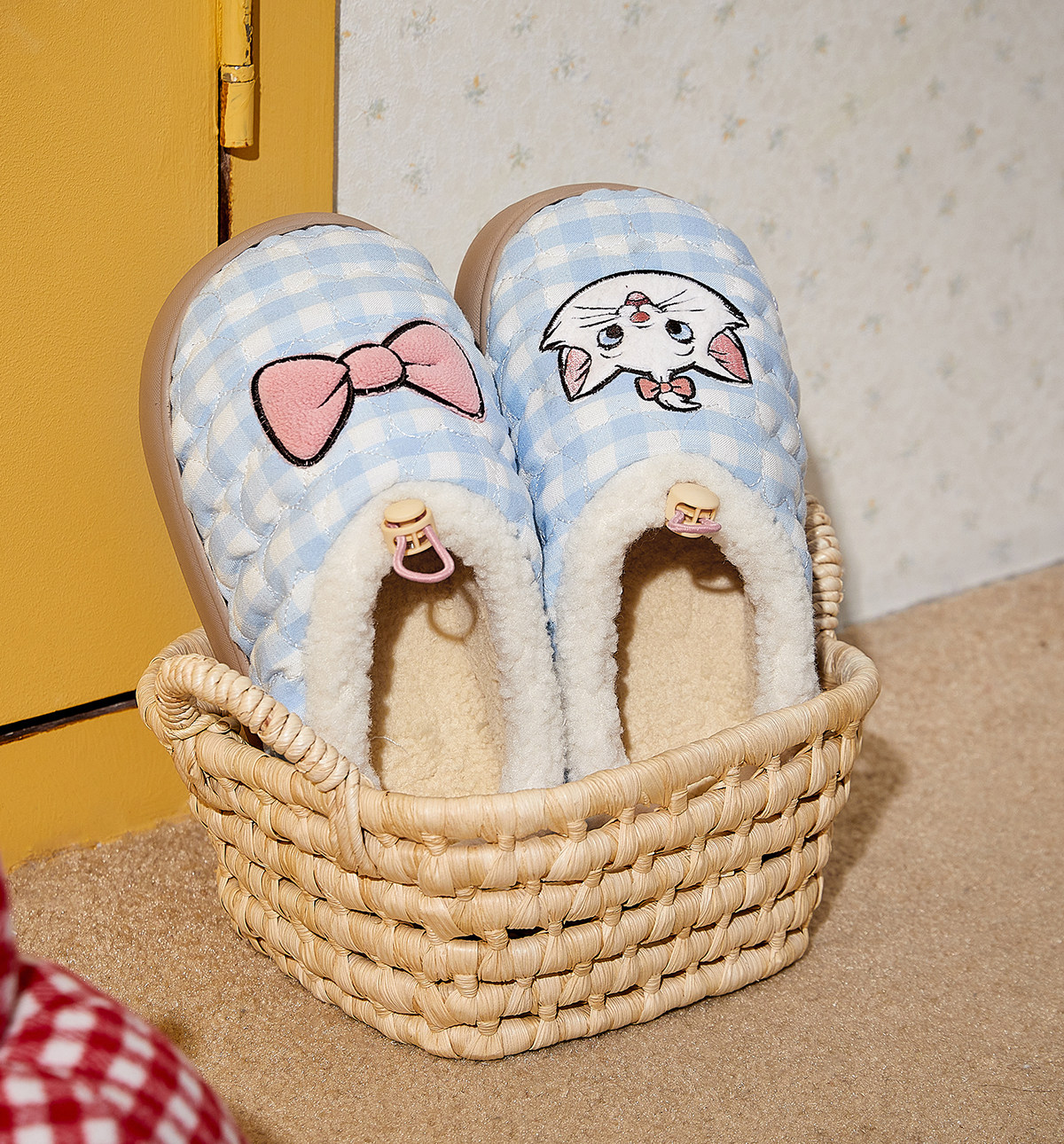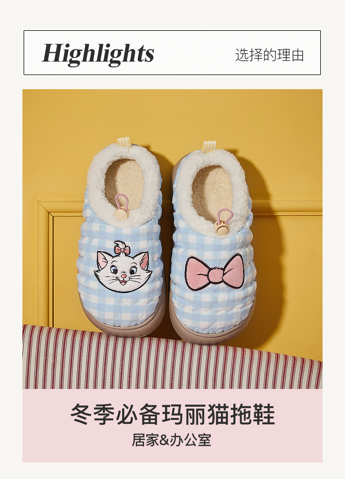 Gukoo/果壳拖鞋女冬季玛丽猫联名新款格子加绒保暖女士居家棉拖鞋