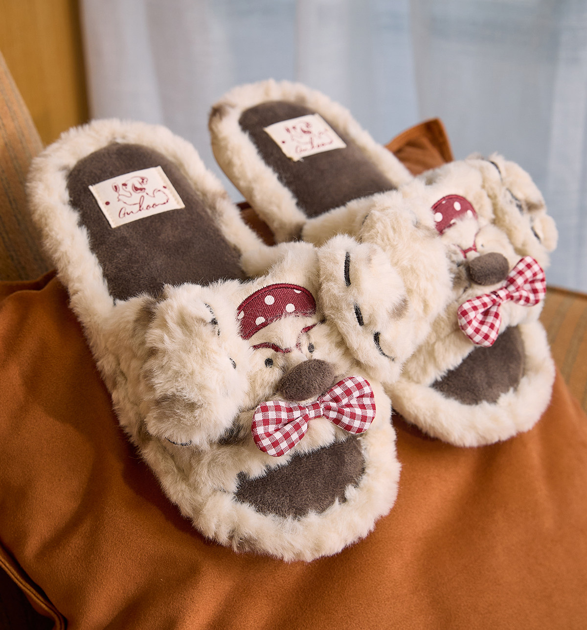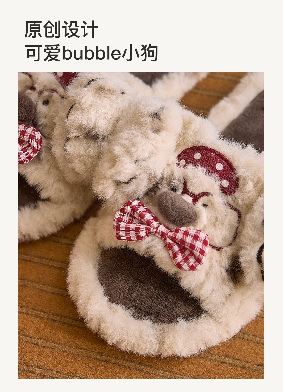 Gukoo/果壳拖鞋女冬季原创bubble小狗毛绒拖2025新款保暖女士居家棉拖鞋