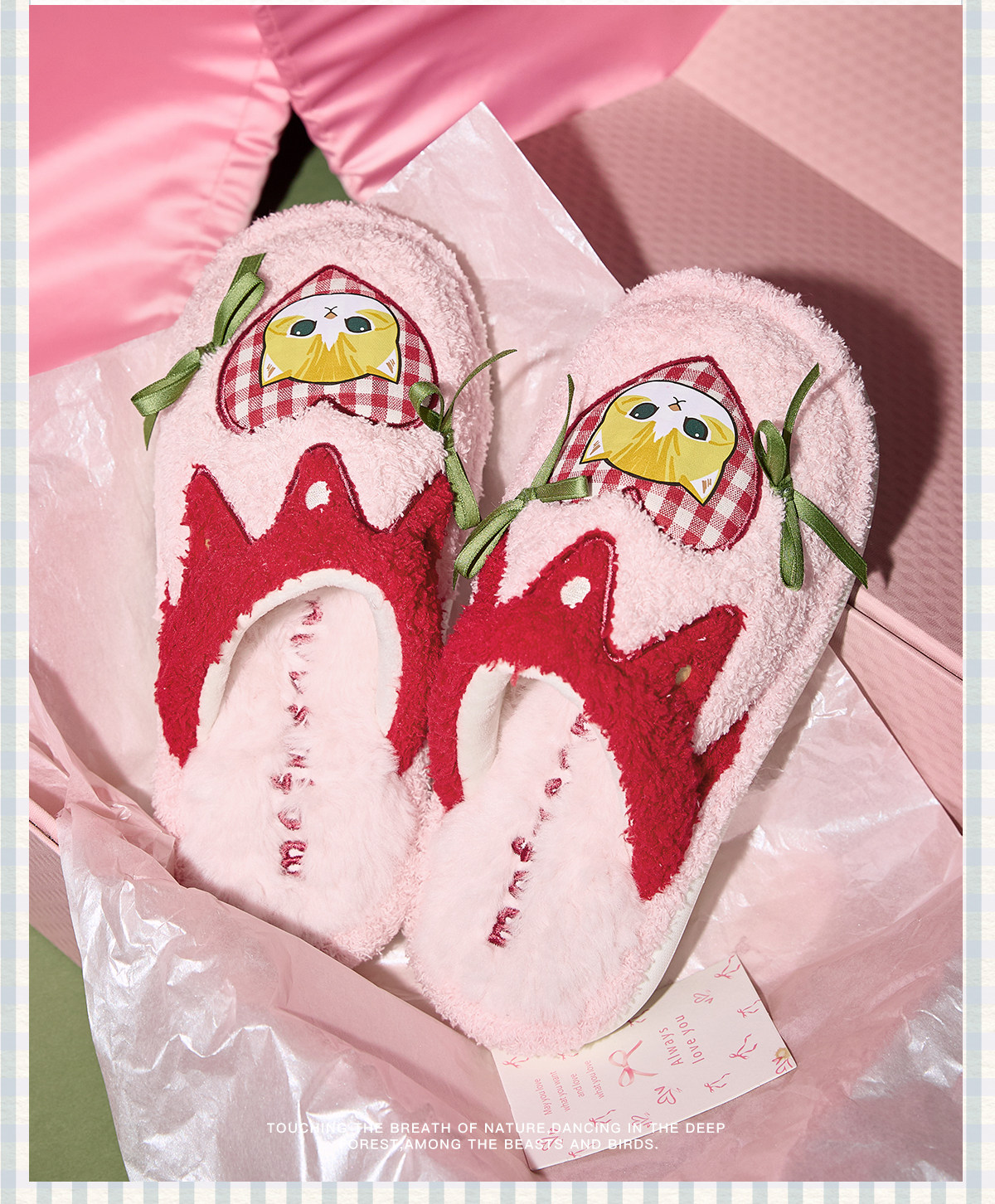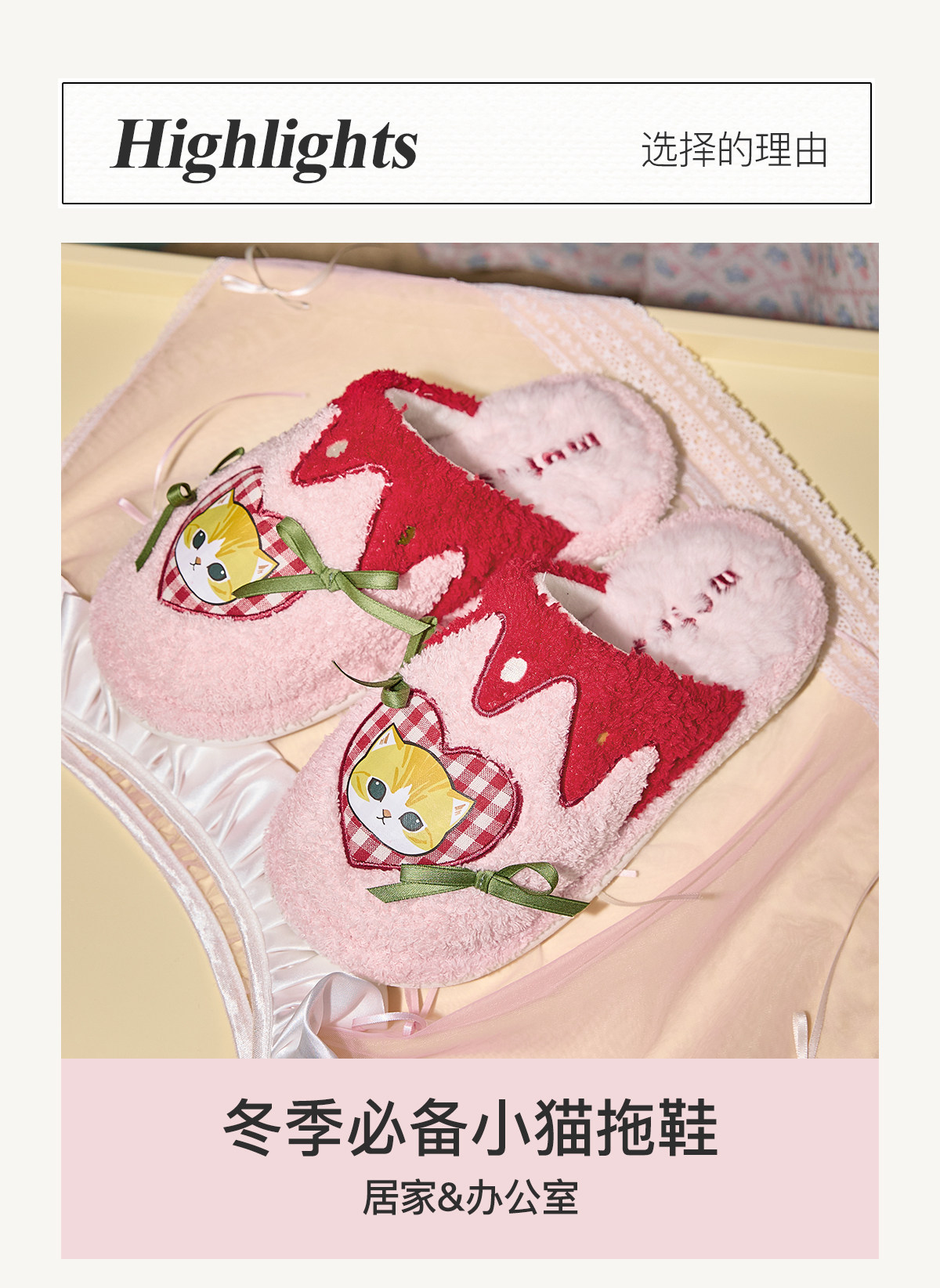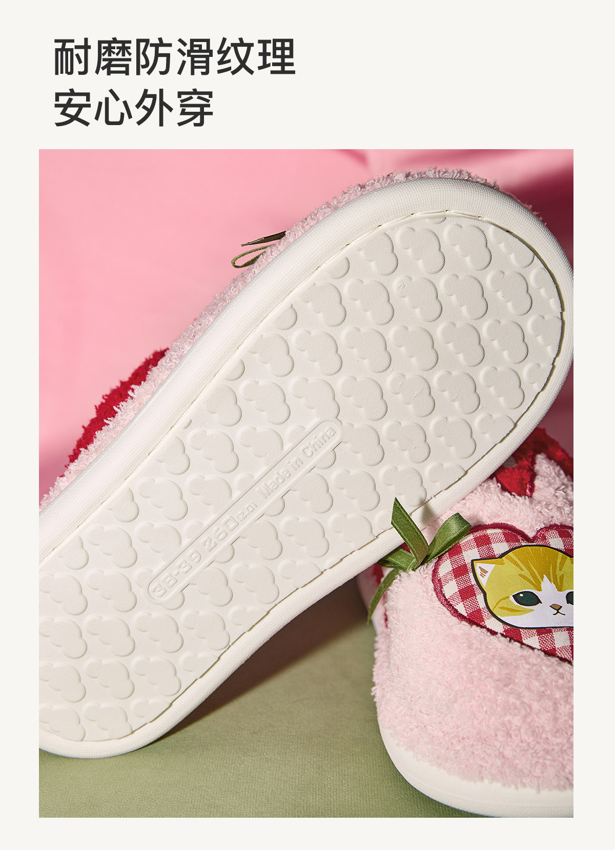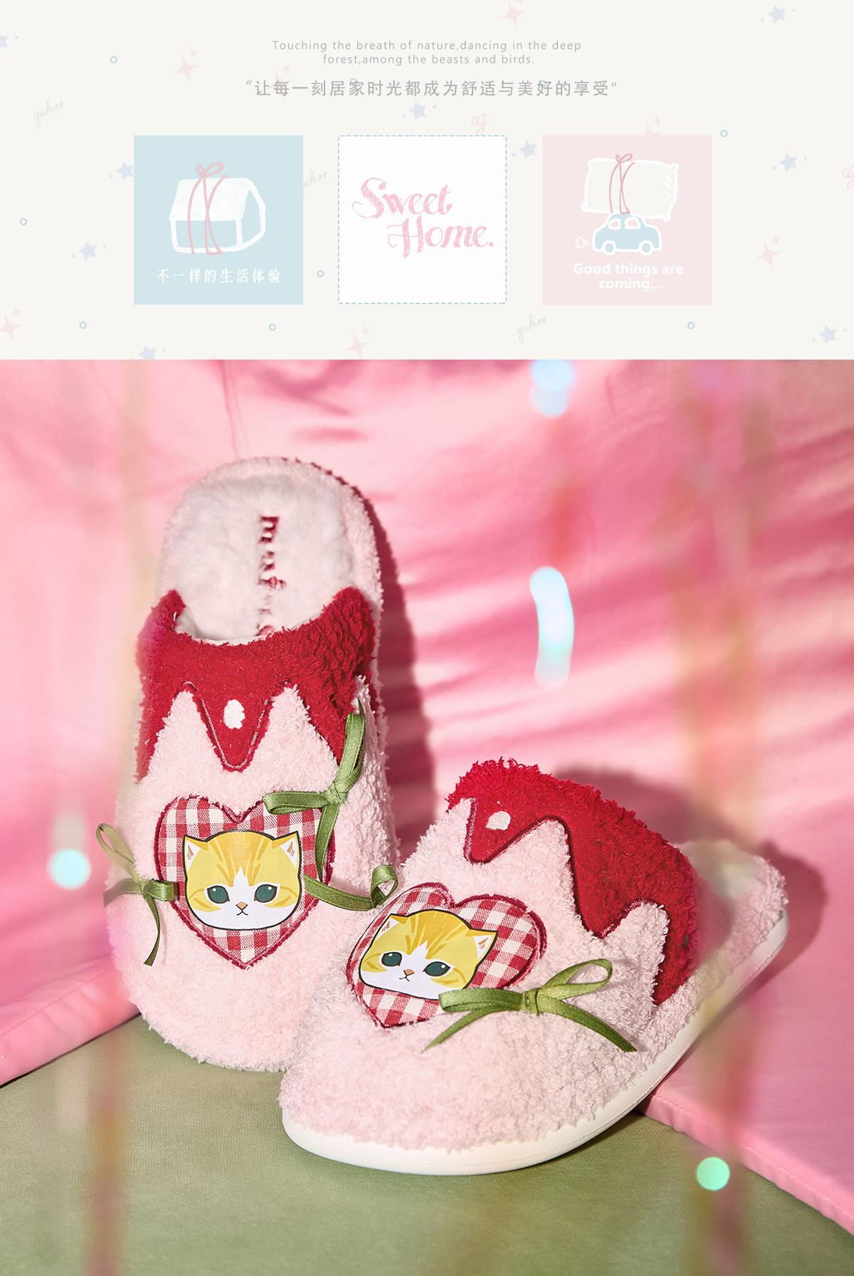 Gukoo/果壳拖鞋女冬季加绒保暖新款鲨鱼猫联名女士居家棉拖鞋