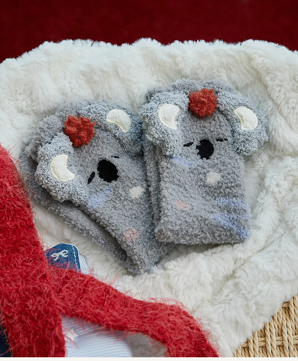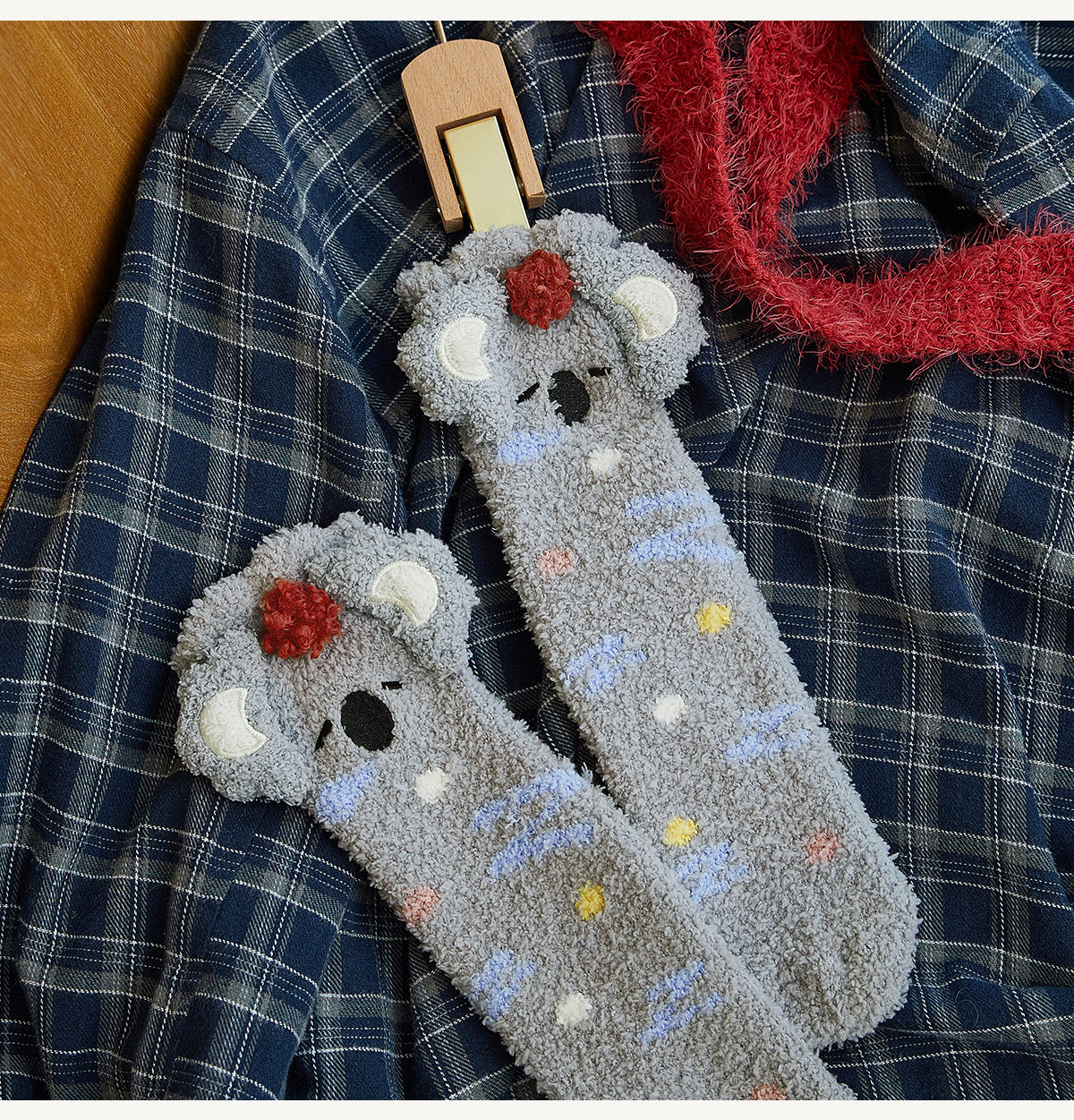 Gukoo/果壳中筒袜女冬季珊瑚绒地板袜保暖新款可爱考拉袜子