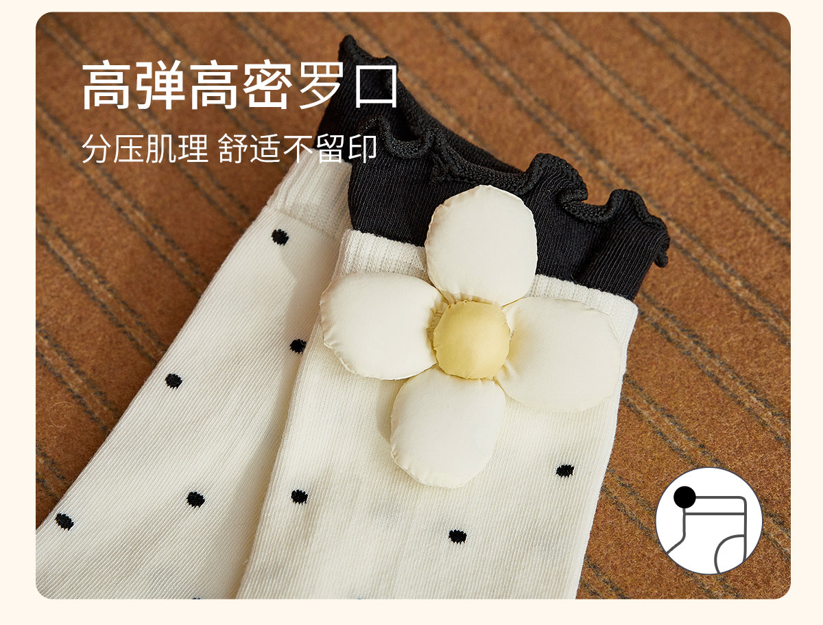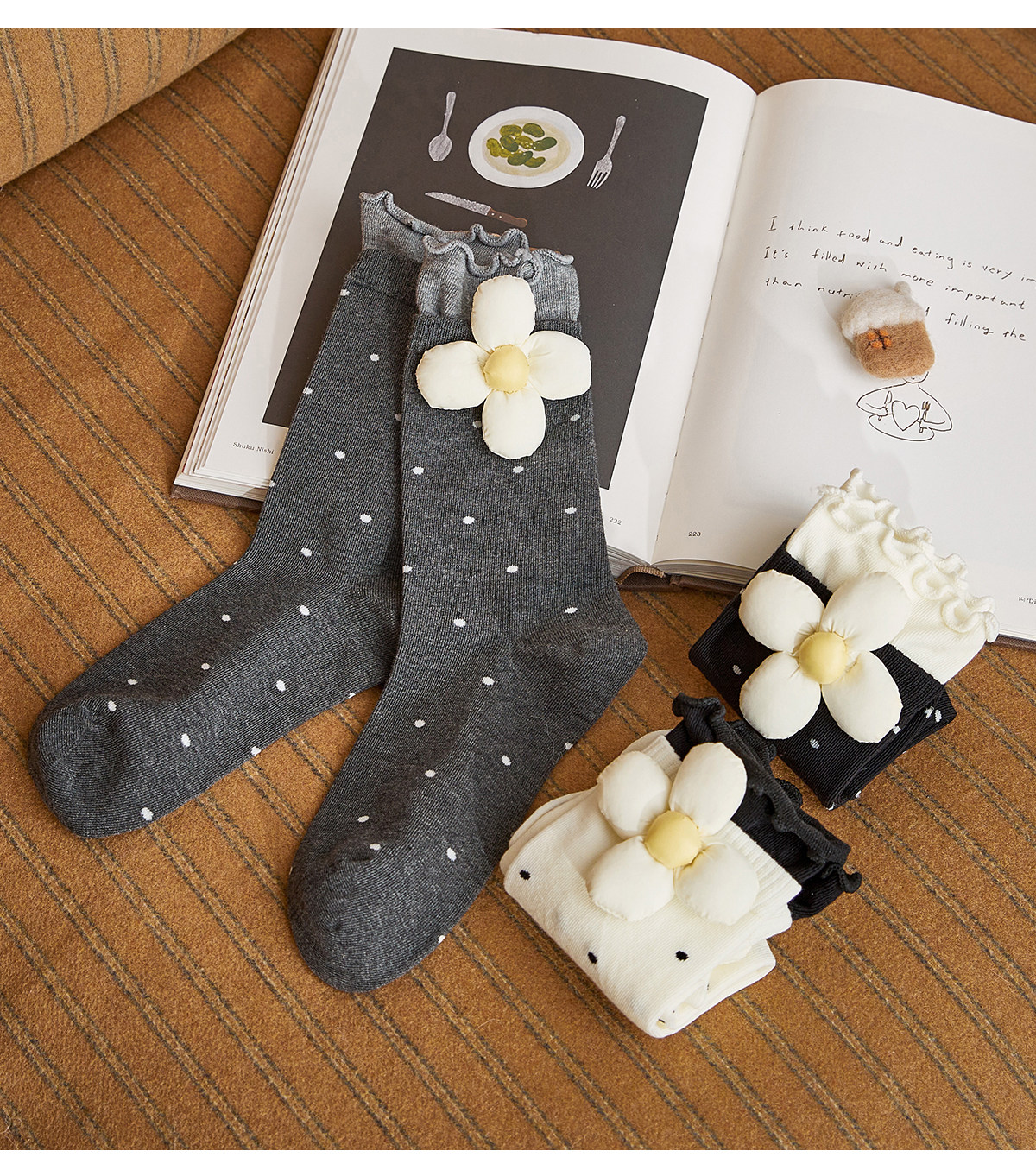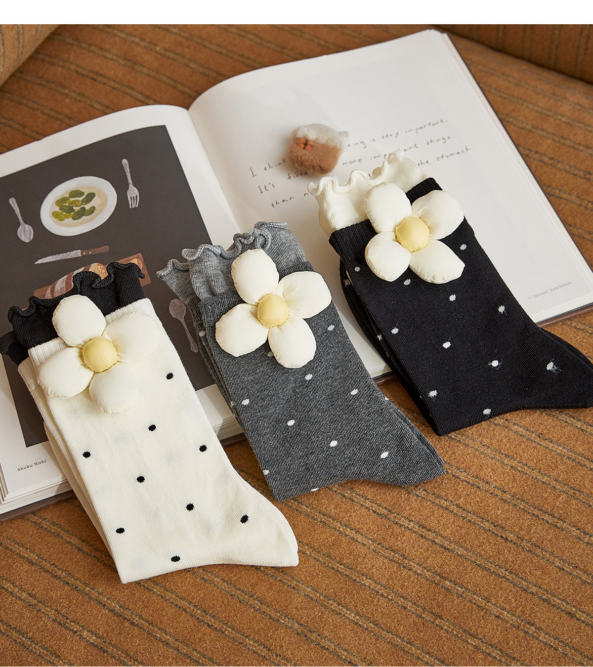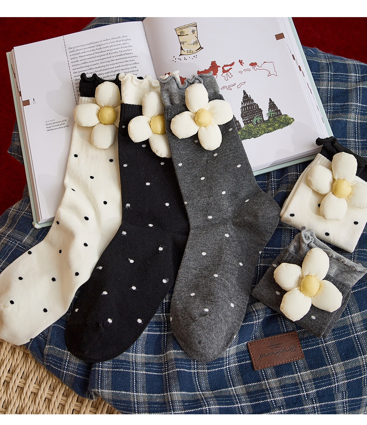 Gukoo/果壳中筒袜女春秋款立体小花新款波点百搭女士袜子组合